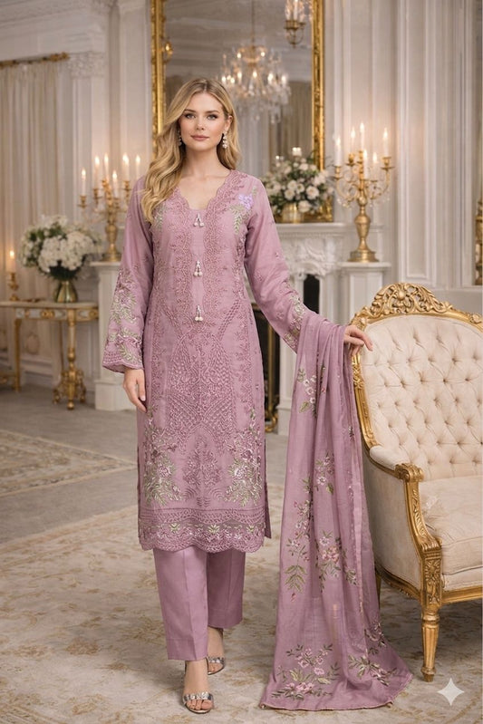 LS-3066 LS-3051 Premium Ready-to-Wear 3 Piece Viscose Suit | Thread Embroidery|Trouser & Linen Slub Printed Dupatta - Soft Pink