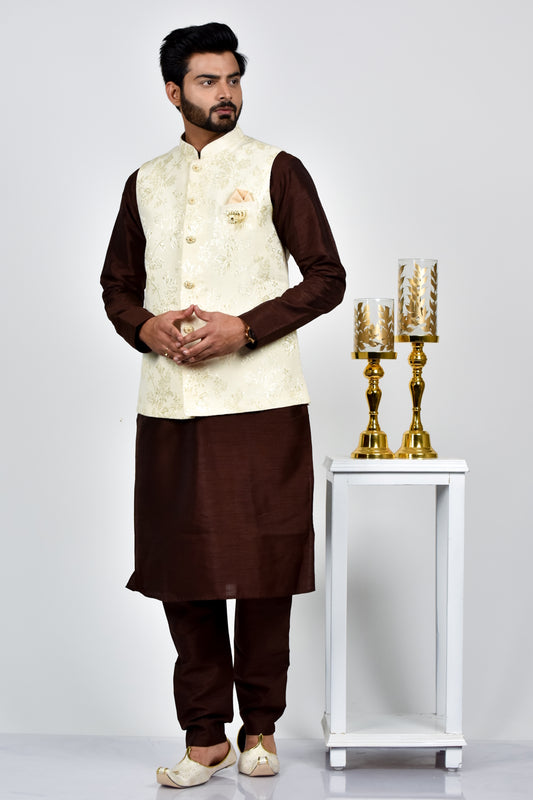 Pair your waistcoat effortlessly with our elegant Kurta Pajama collection for a traditional ensemble, or explore our regal Sherwanis range to create a complete wedding-ready look.