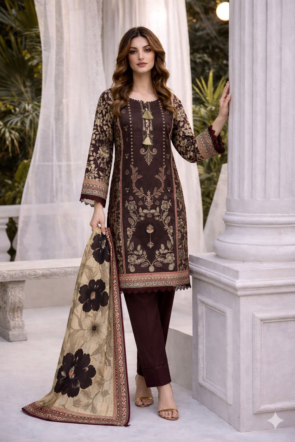 AYN-3078 Ready to Wear |  Premium Lawn 3-Piece  Embroidered Suit with Matching Dupatta