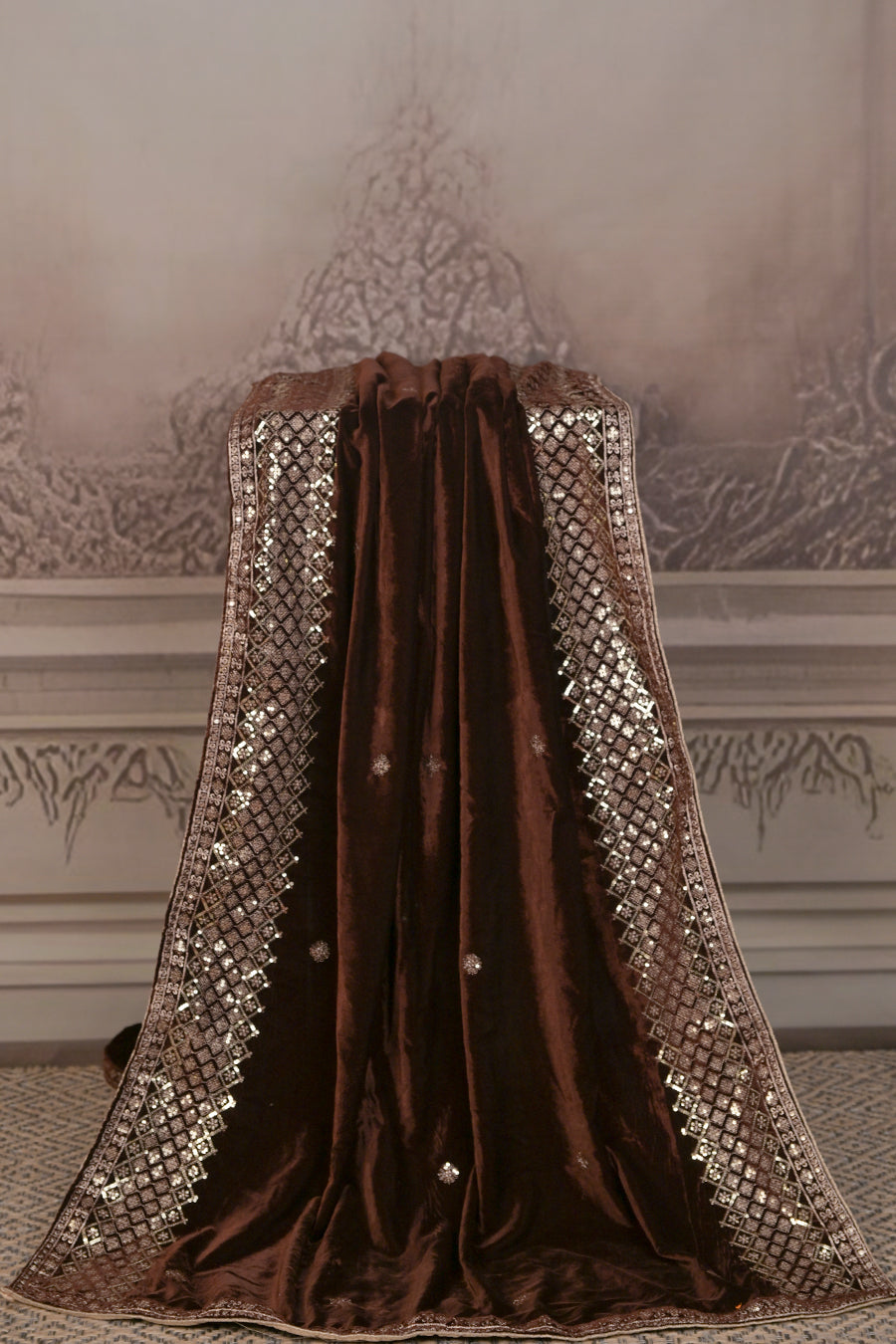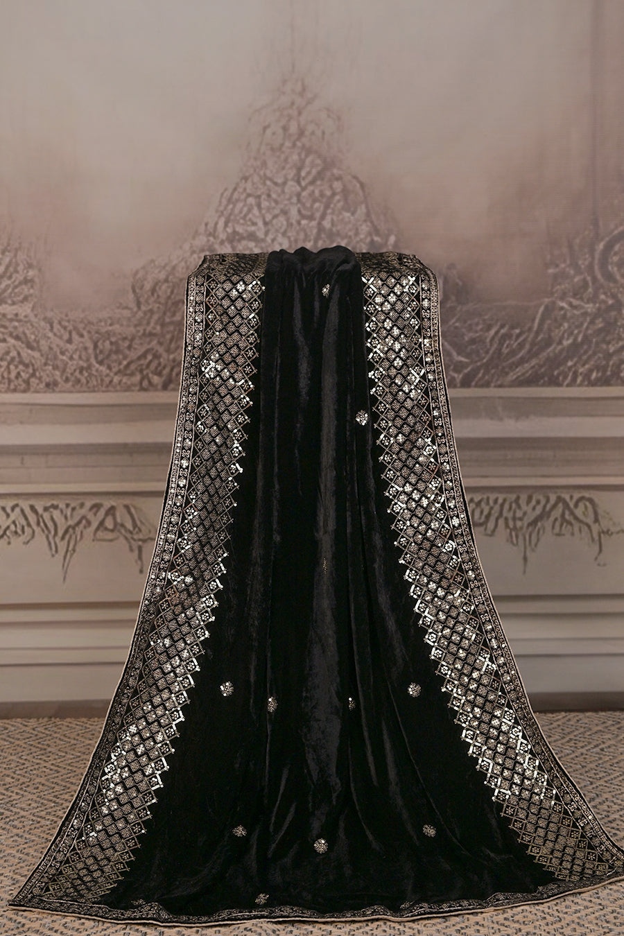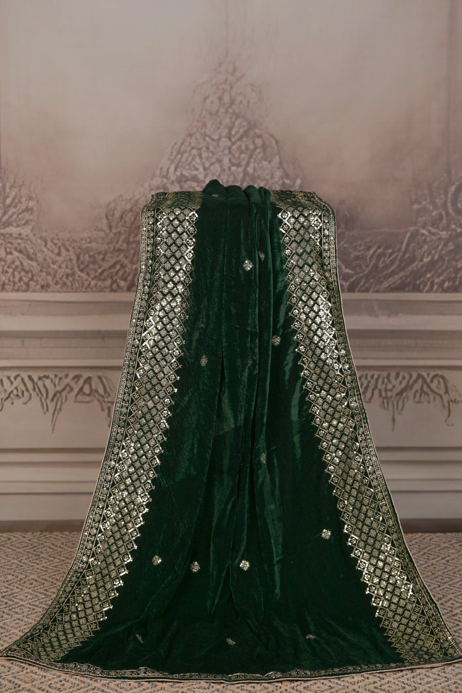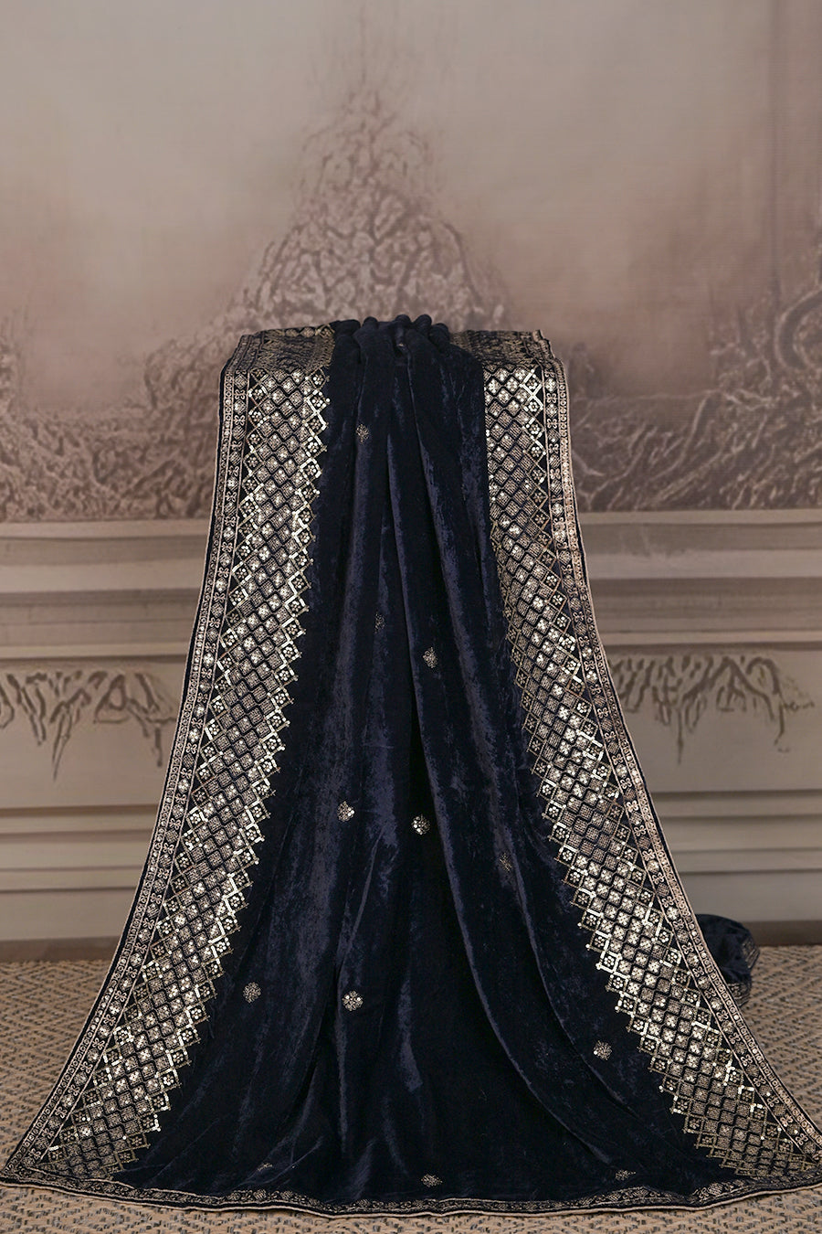 Indulge in pure elegance with this Premium Micro Velvet Dupatta, crafted for those who love timeless luxury. The rich velvet fabric offers a regal drape and a soft, plush feel, while delicate embroidered motifs and an intricately designed border create a stunning blend of tradition and sophistication.