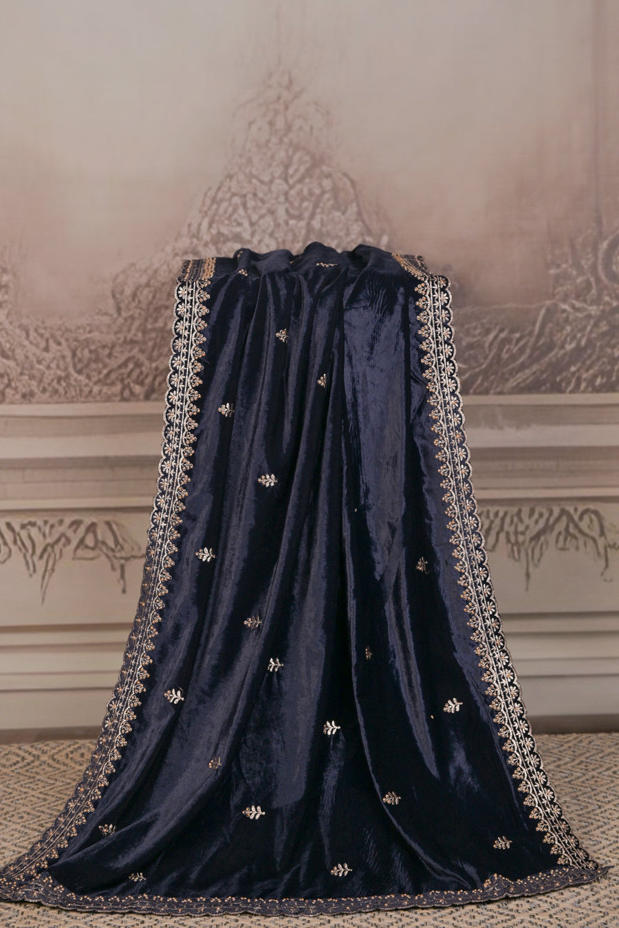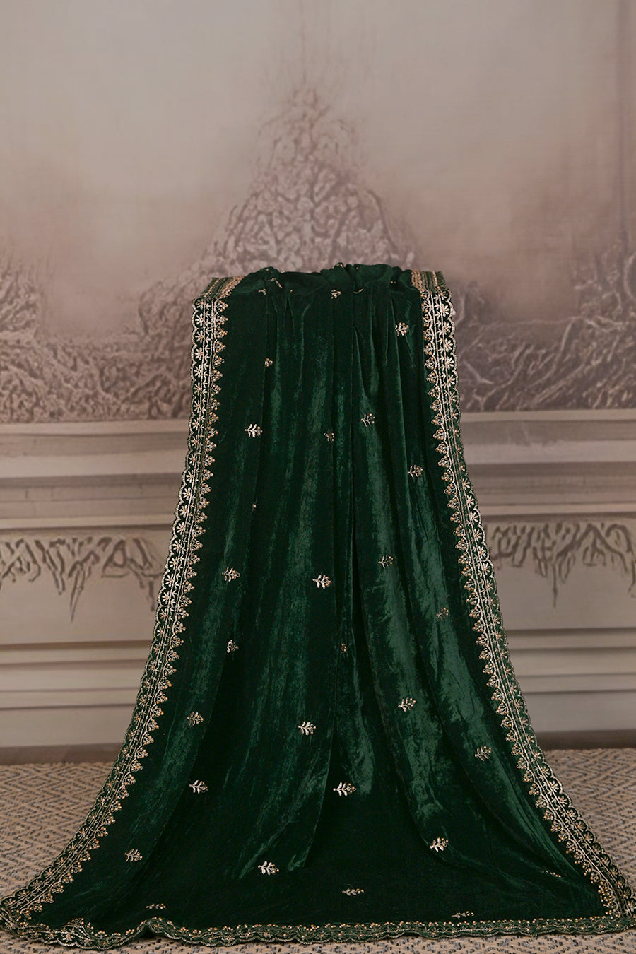 Available in 8 deep, mesmerizing shades, this dupatta is the perfect finishing piece to elevate lehengas, shararas, or long kurtas. Whether for weddings, festive occasions, or grand celebrations, this velvet masterpiece ensures you’ll stand out with poise and elegance.