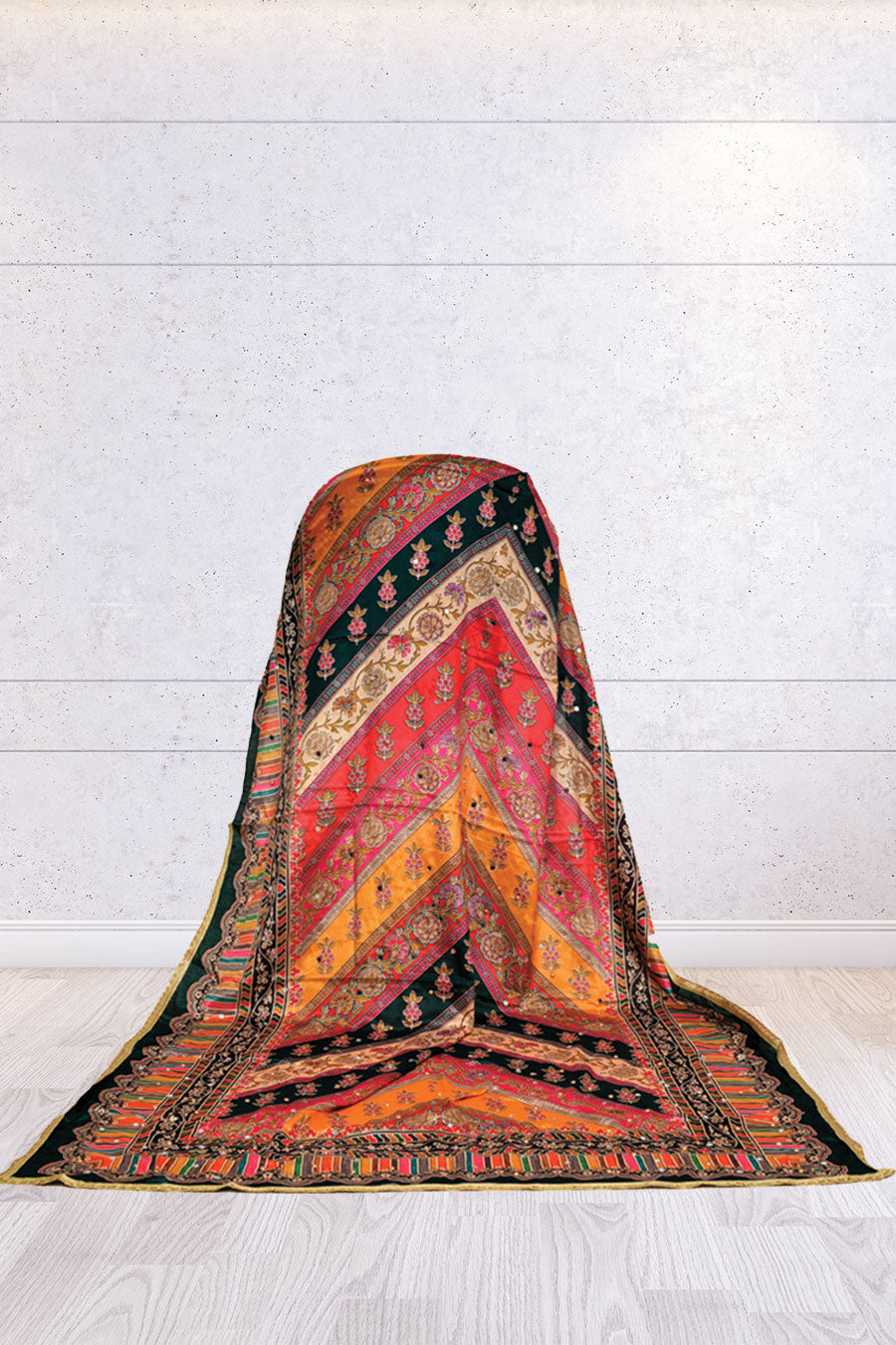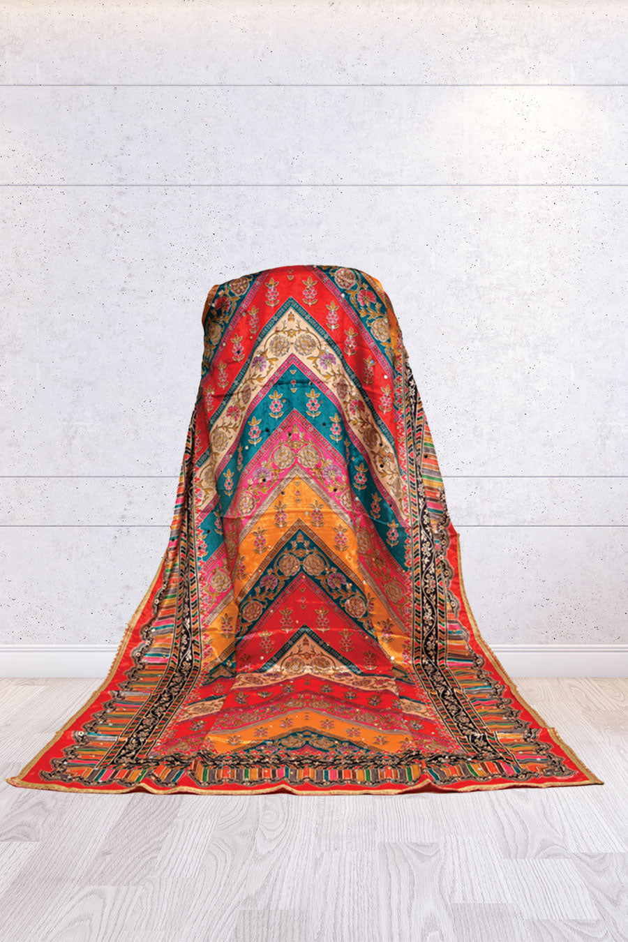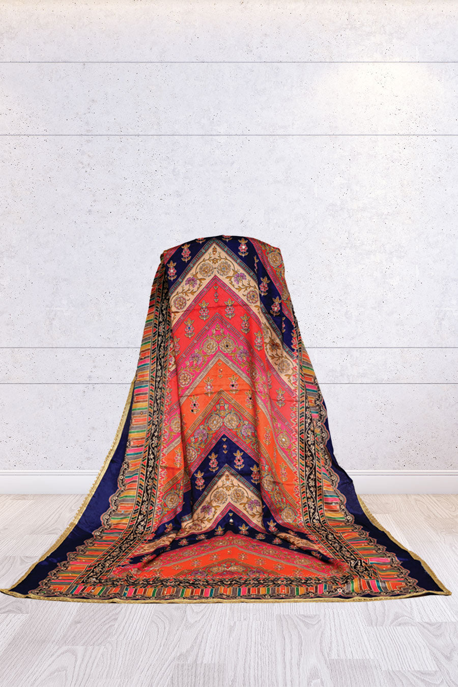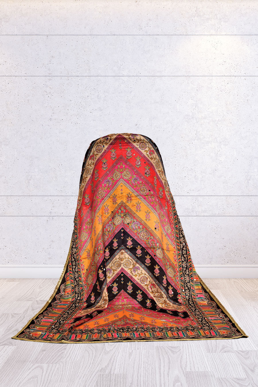 FBDUP-48 Multicolour Stripe Print Chinnon Dupatta with Gold Zari Border