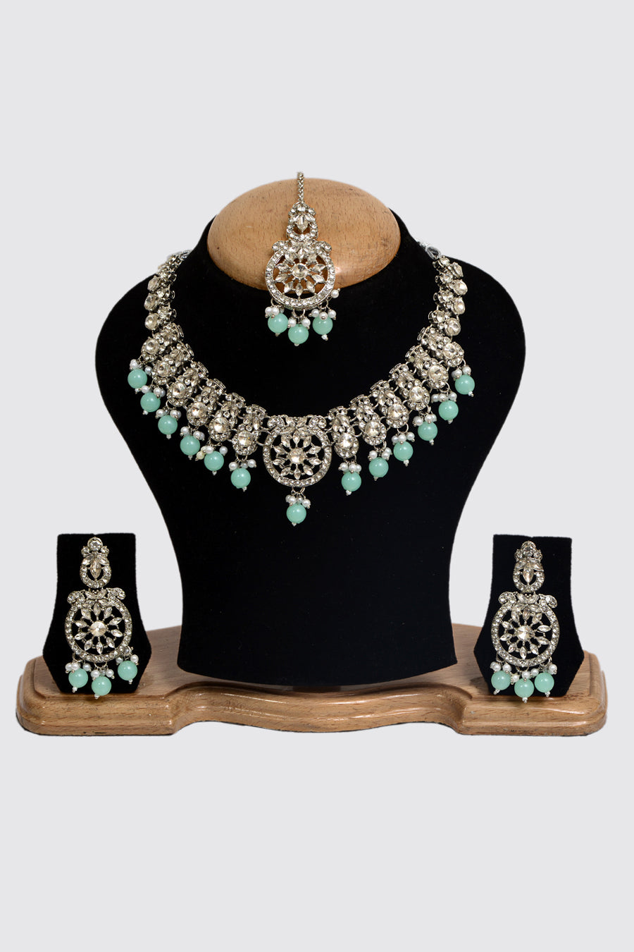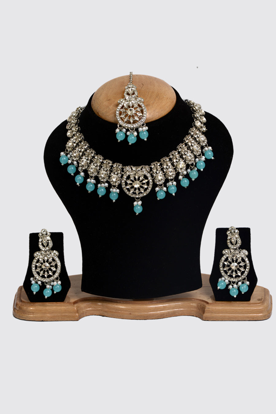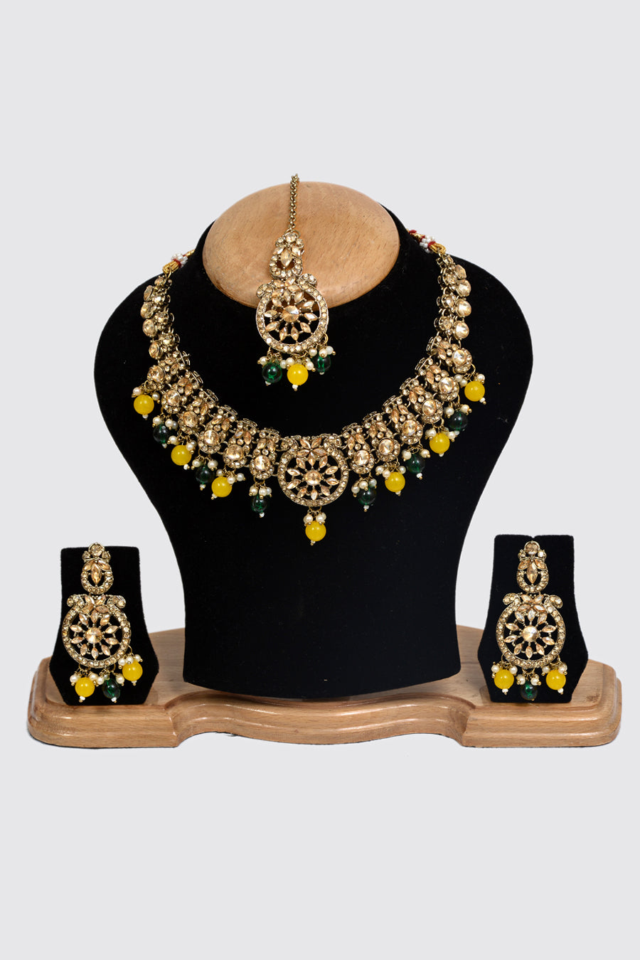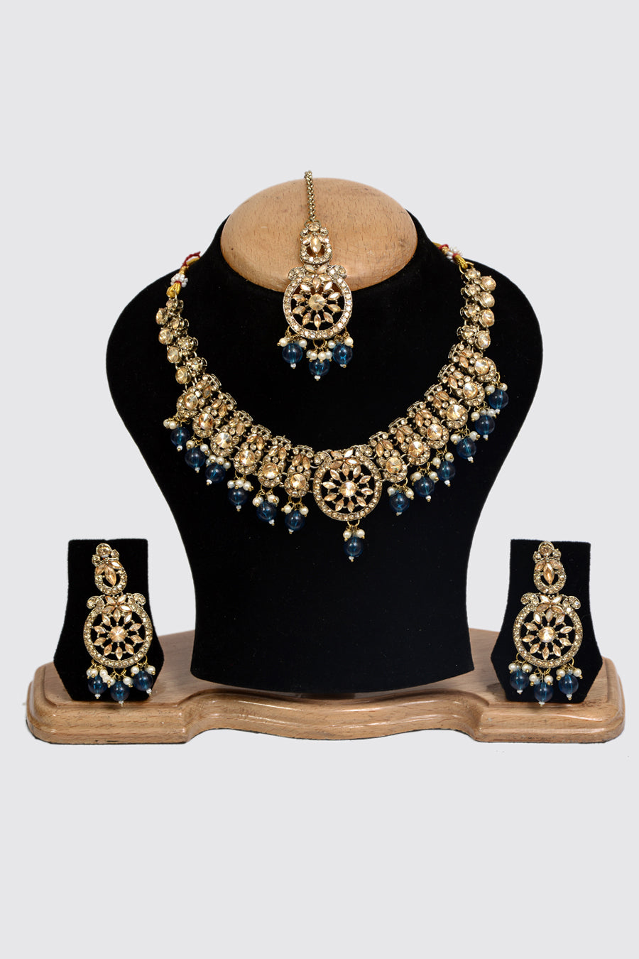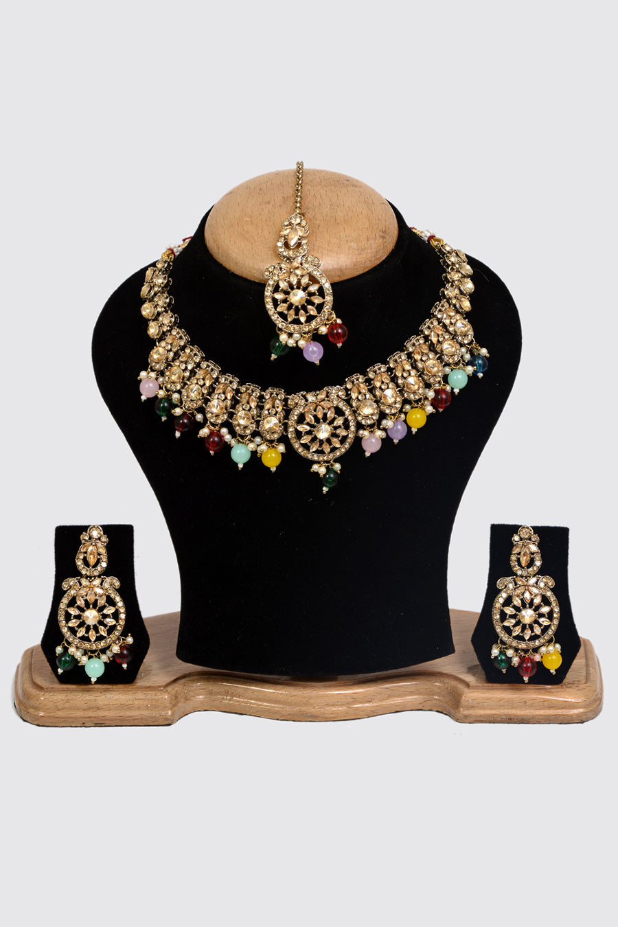 - Includes Choker Necklace, Earrings & Maang Tikka