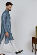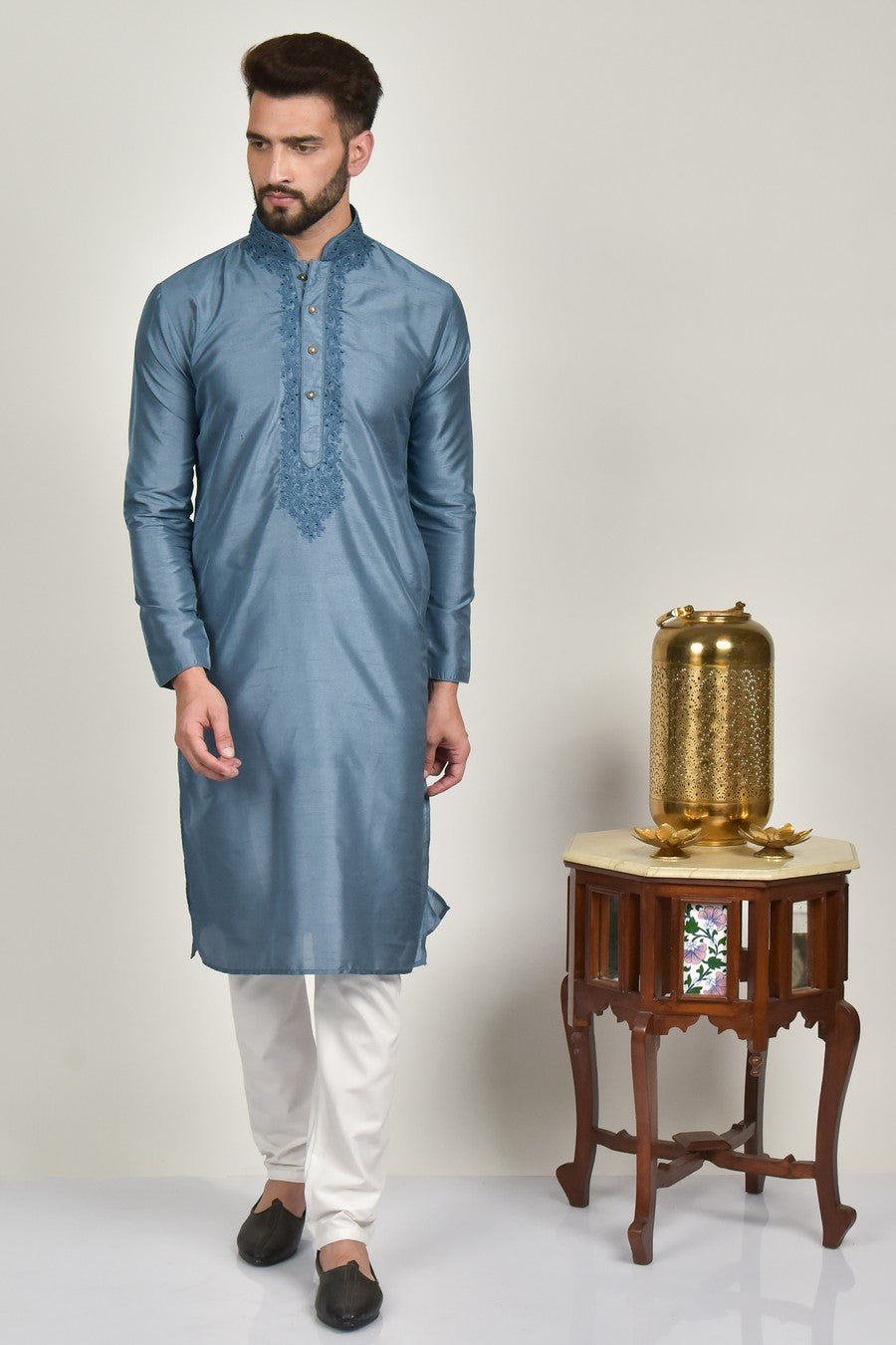 FABRIC GEORGETTE|RAMA GREEN CIRCULAR DRESS|GOLDEN EMBROIDERED SLEEVES|BOAT NECK WITH GOLDEN POTLI BUTTONS|GOLDEN GOTTA WORK ON CIRCULAR AREA|RAMA GREEN CHURIDAAR & CHIFFON DUPATTA