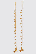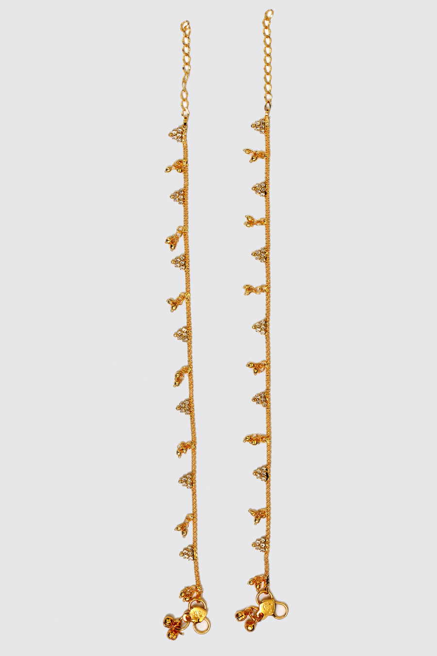 Step into timeless elegance with this exquisite pair of payals, intricately designed with delicate bead danglers along the chain. Crafted for both comfort and charm, these anklets offer a perfect blend of ethnic grace and traditional allure, making them an ideal accessory for festive occasions and weddings.