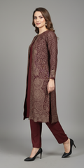 Prepare to command the winter season with a statement of unparalleled warmth and sophistication. This premium three-piece set is a celebration of luxurious texture and intricate artistry, seamlessly blending the richness of heritage weaving with an impeccable modern silhouette.
