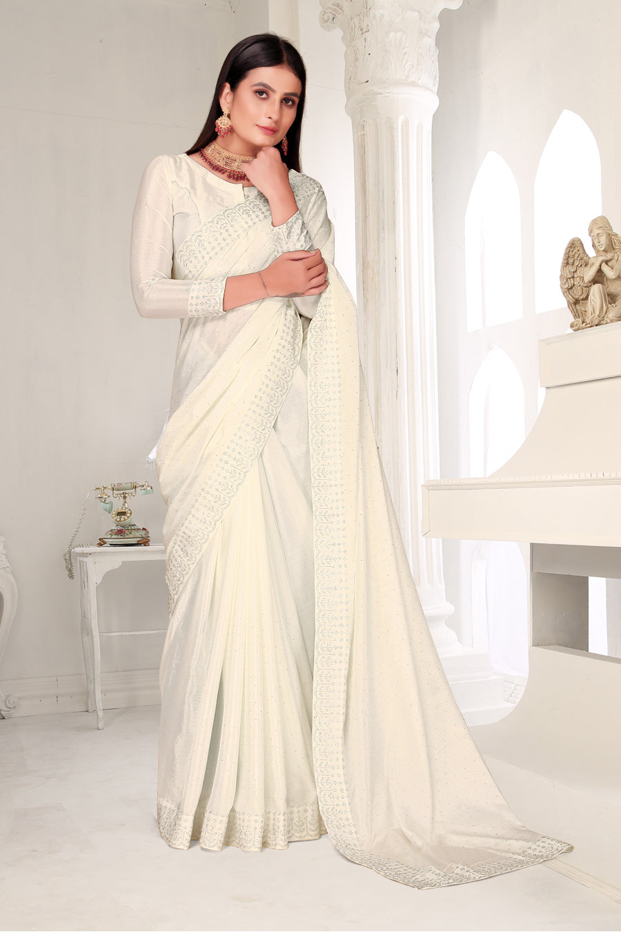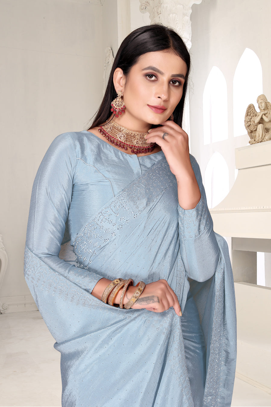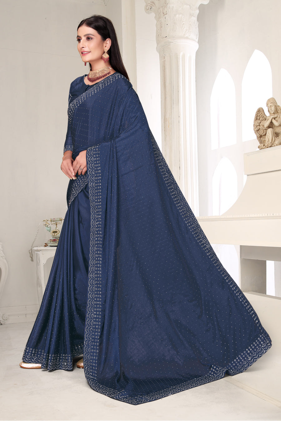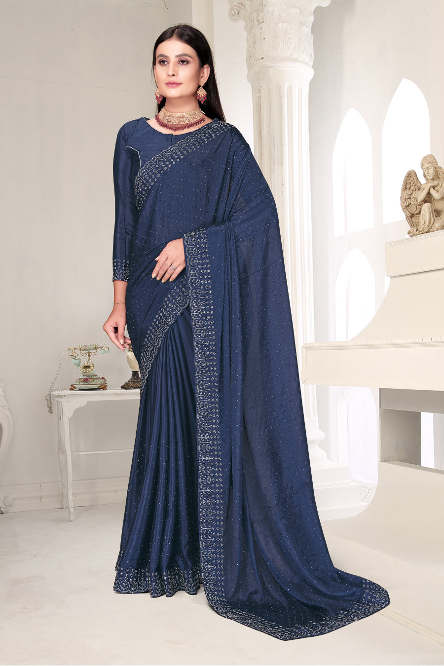 Elegant Vichitra Saree with All-Over Silver Stone Work