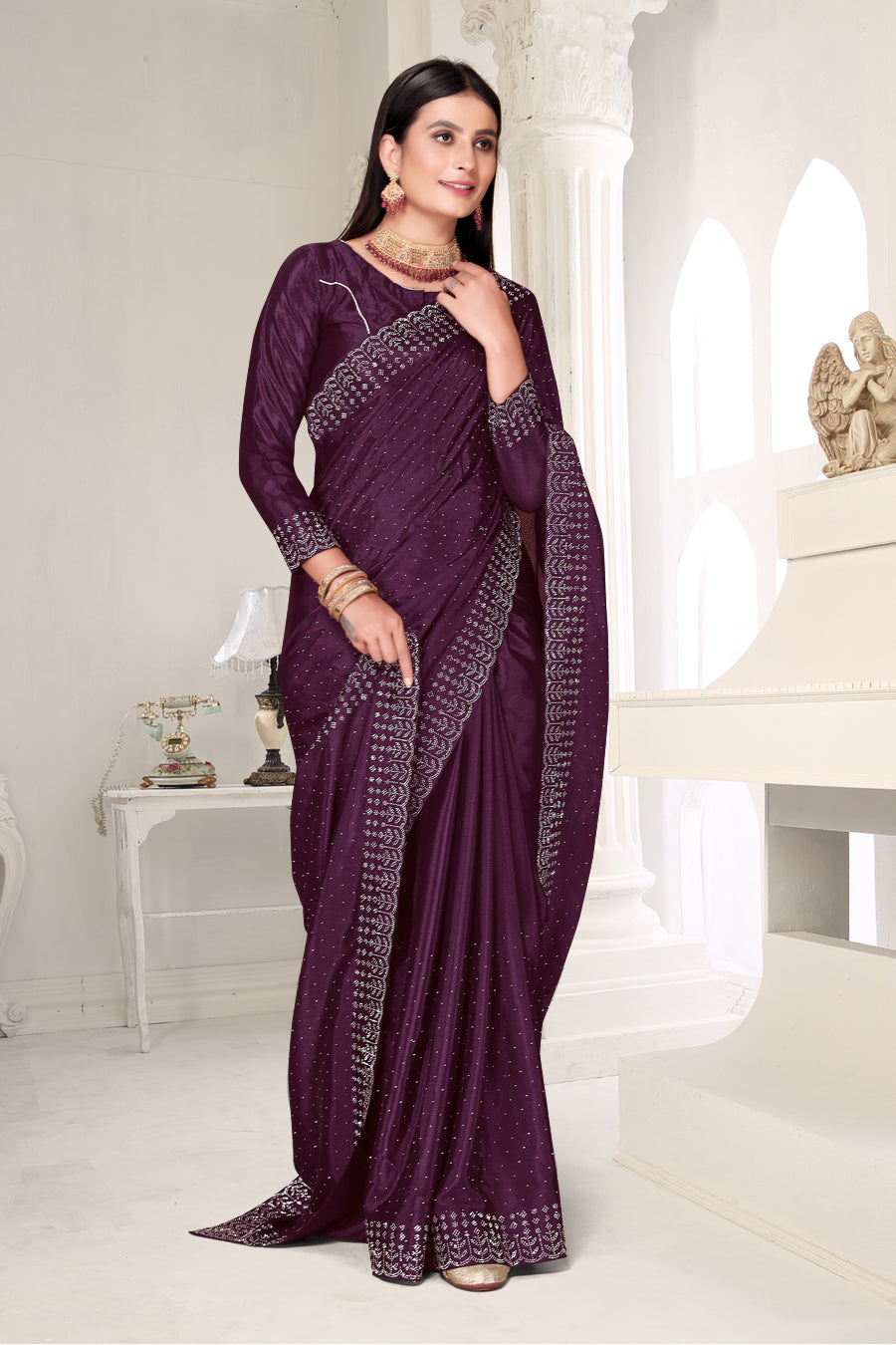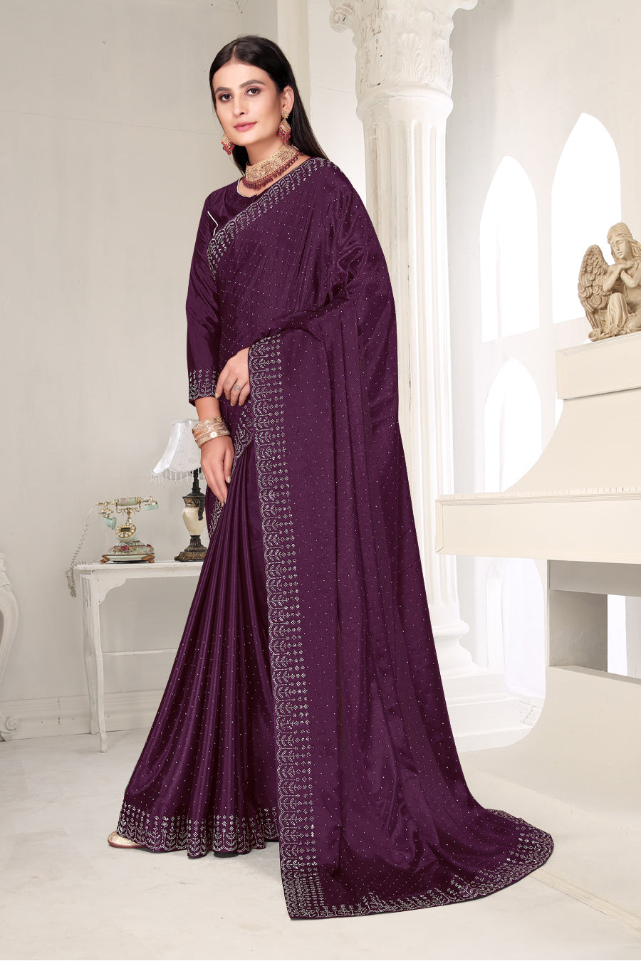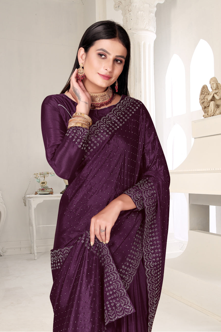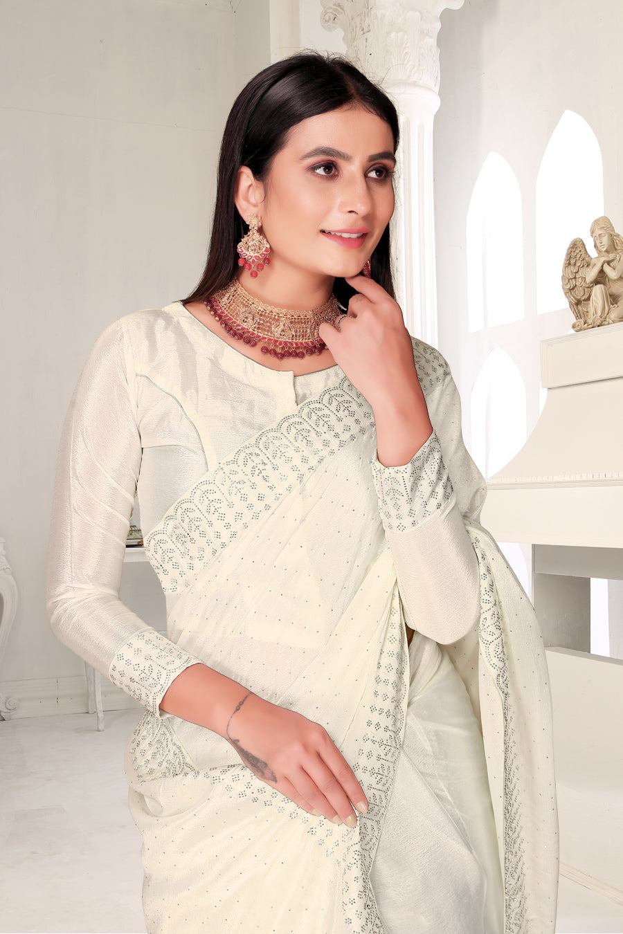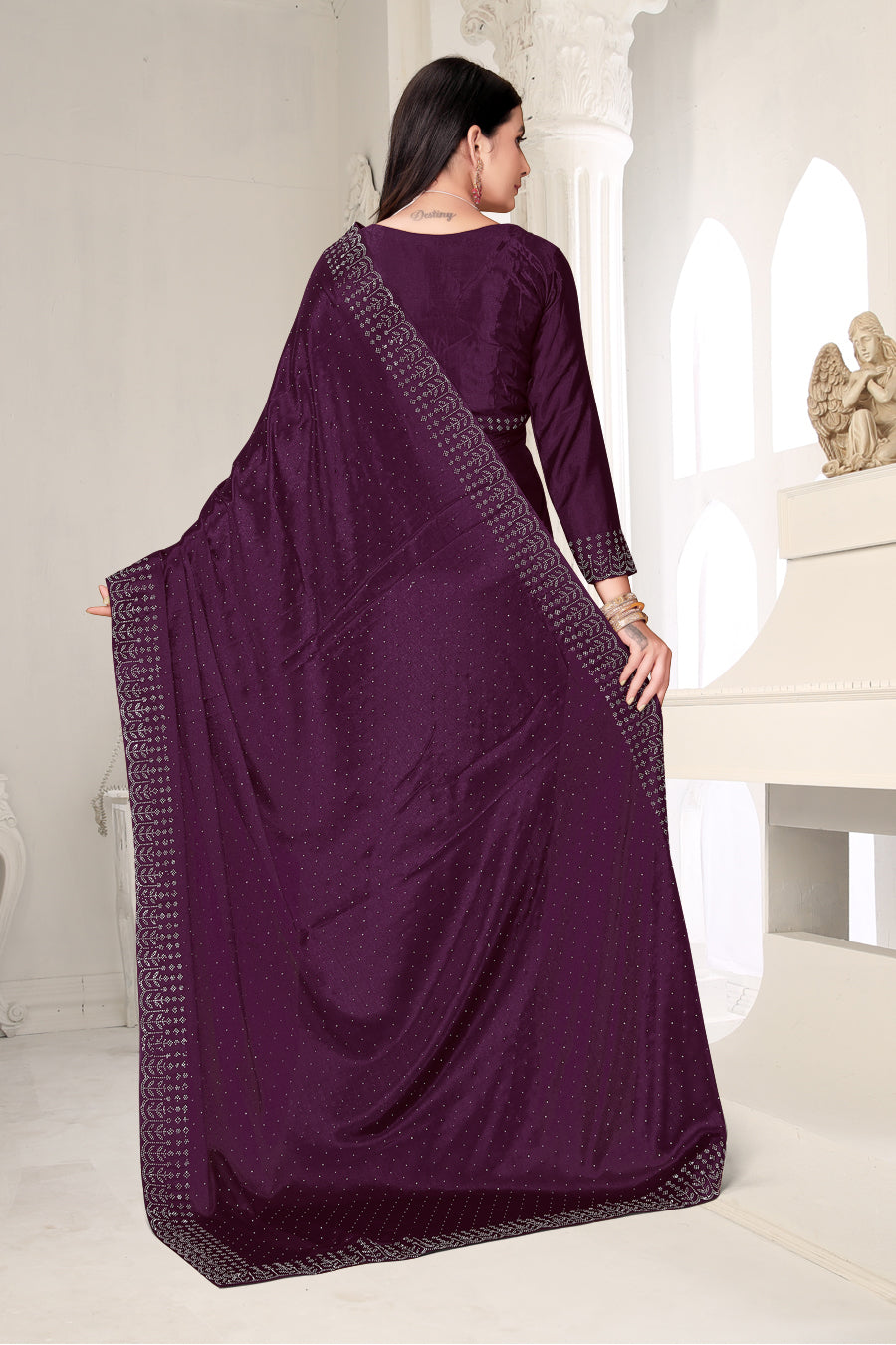 Elegant Vichitra Saree with All-Over Silver Stone Work