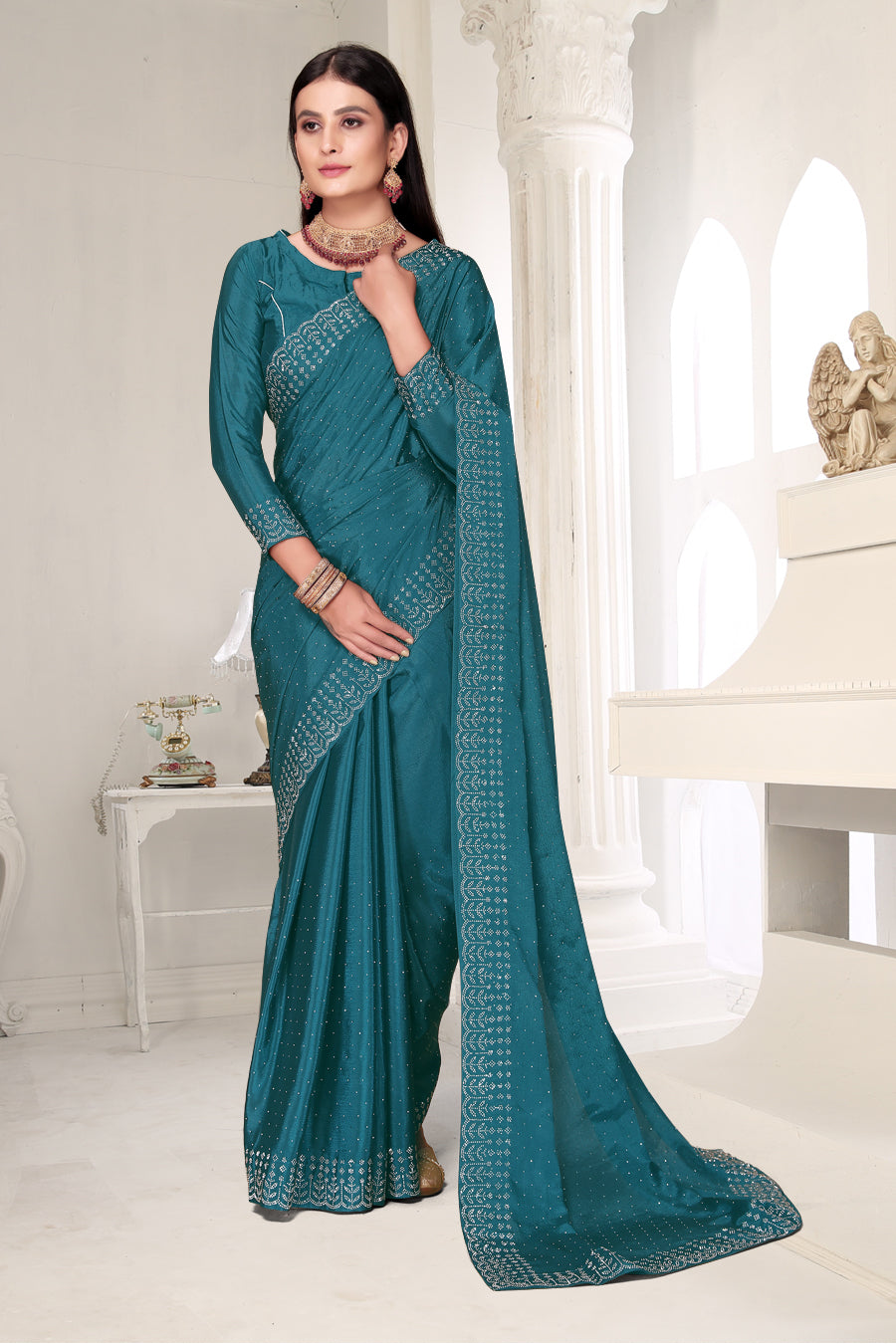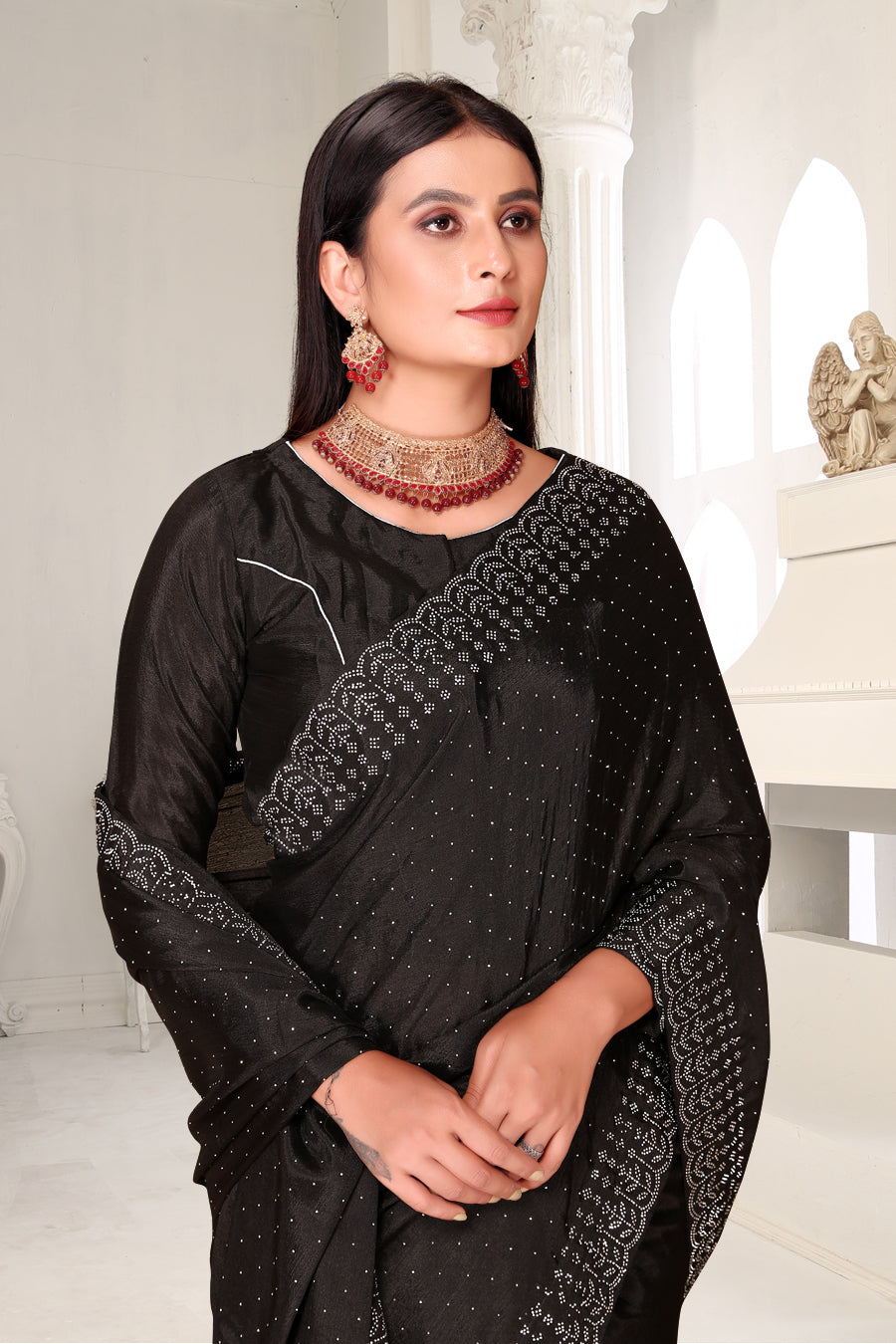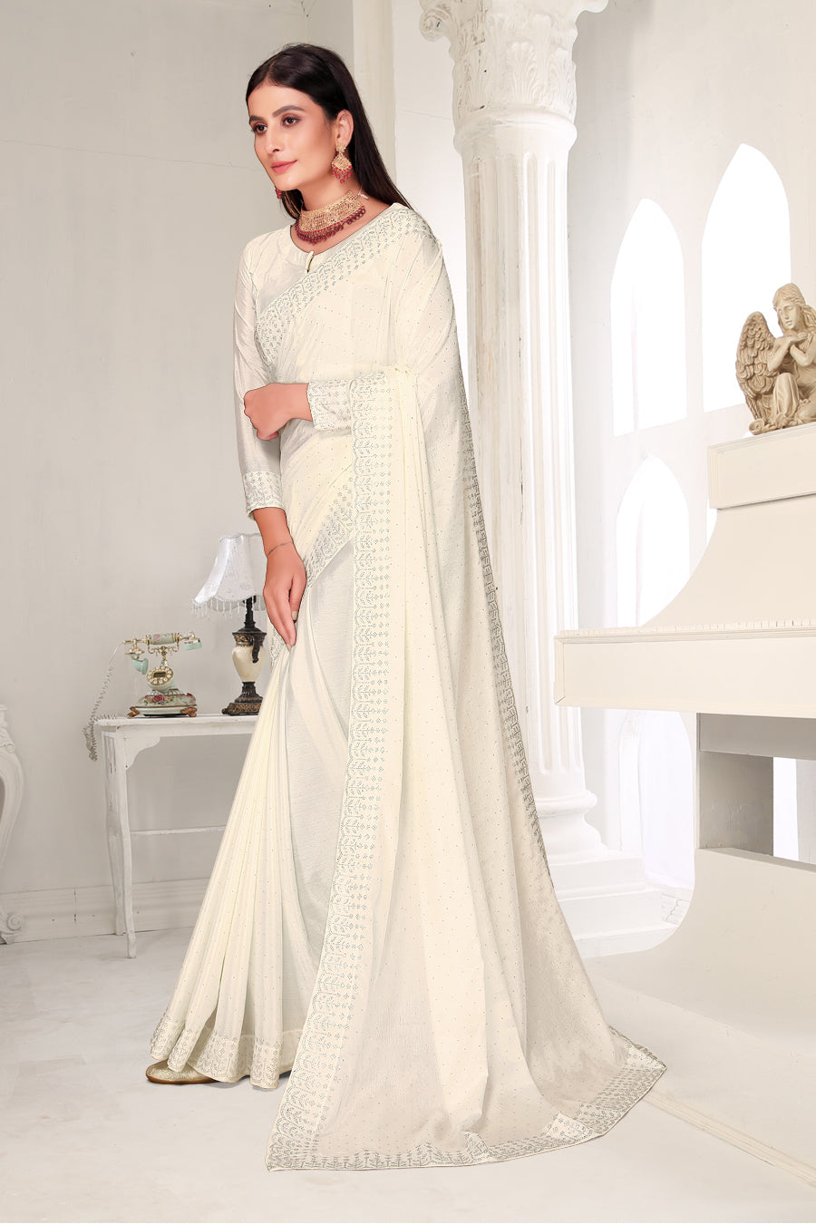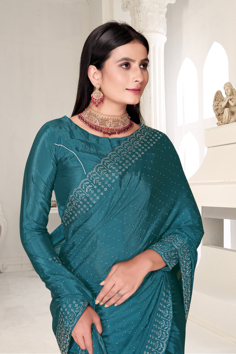 Elegant Vichitra Saree with All-Over Silver Stone Work