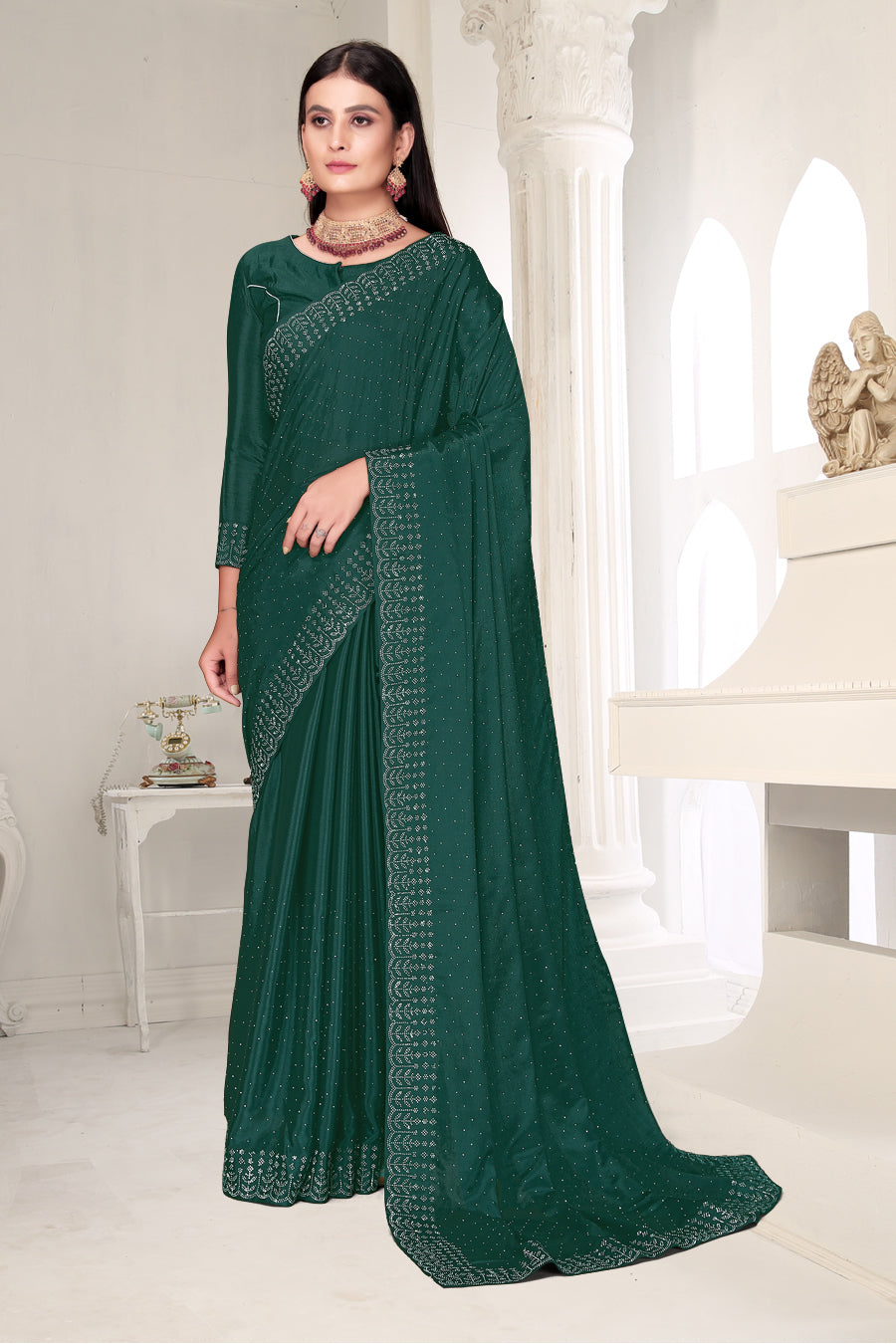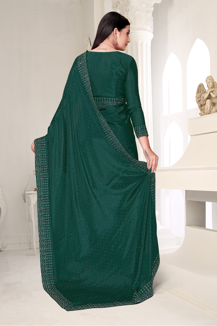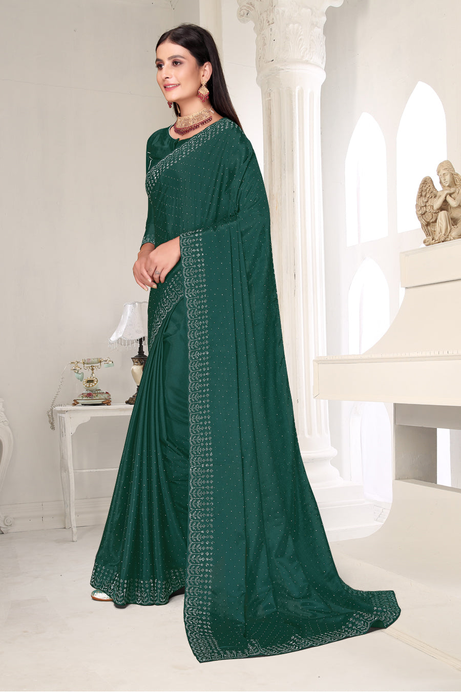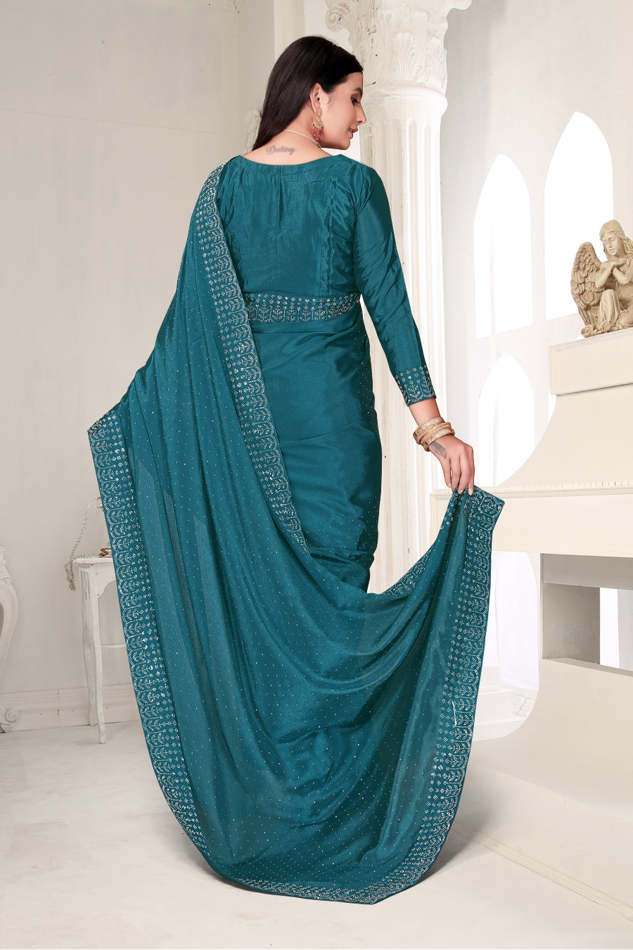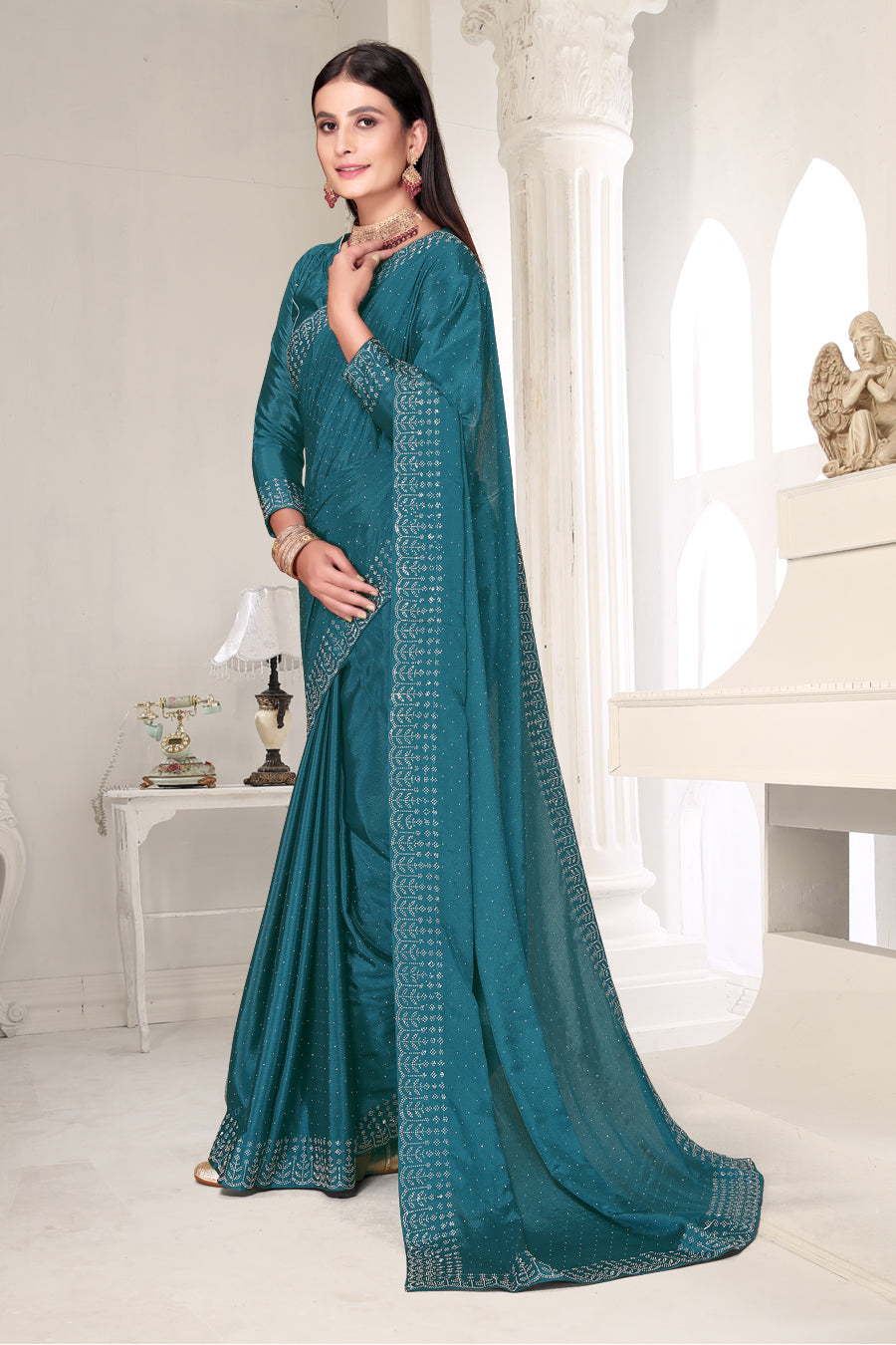 Elegant Vichitra Saree with All-Over Silver Stone Work
