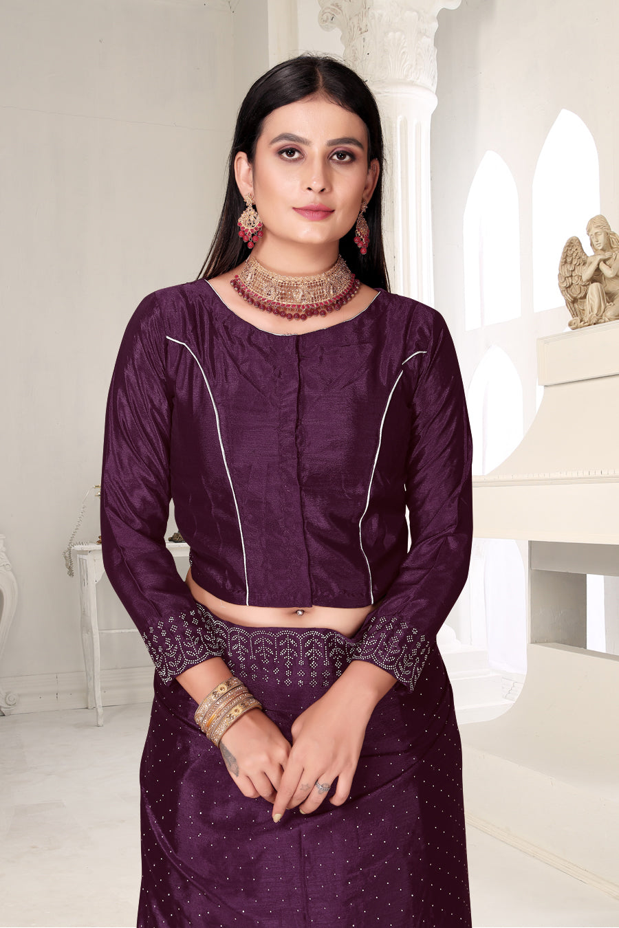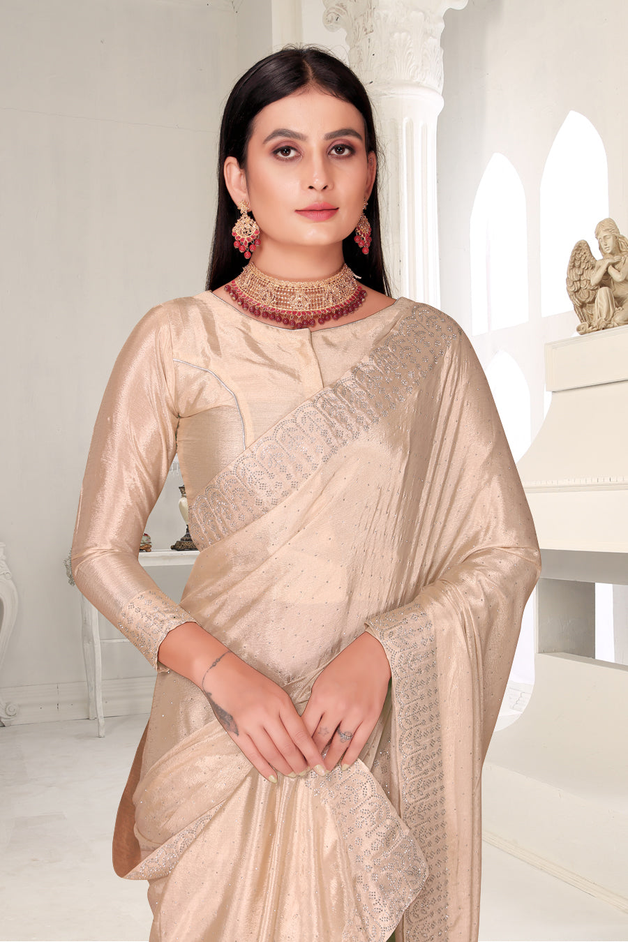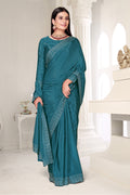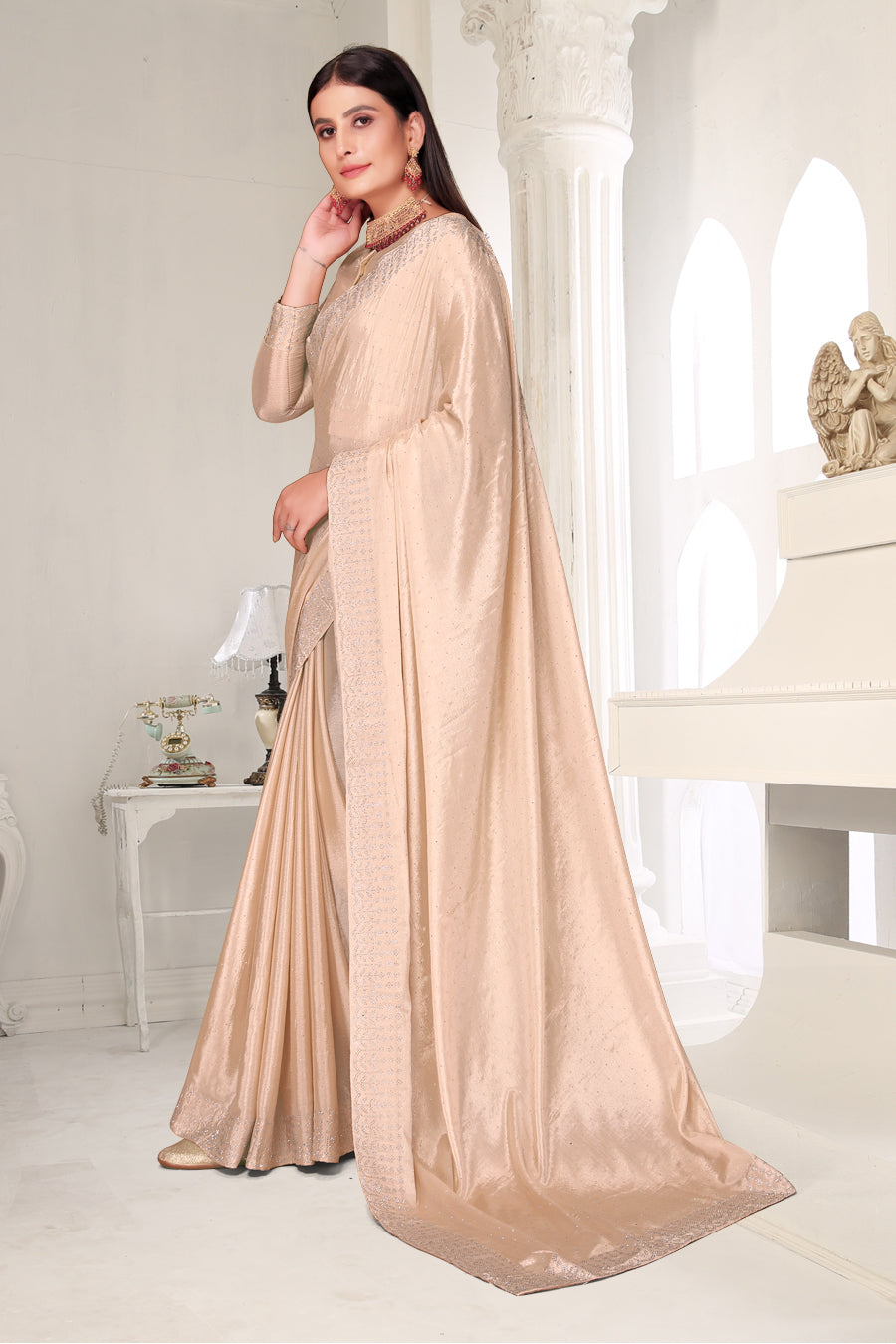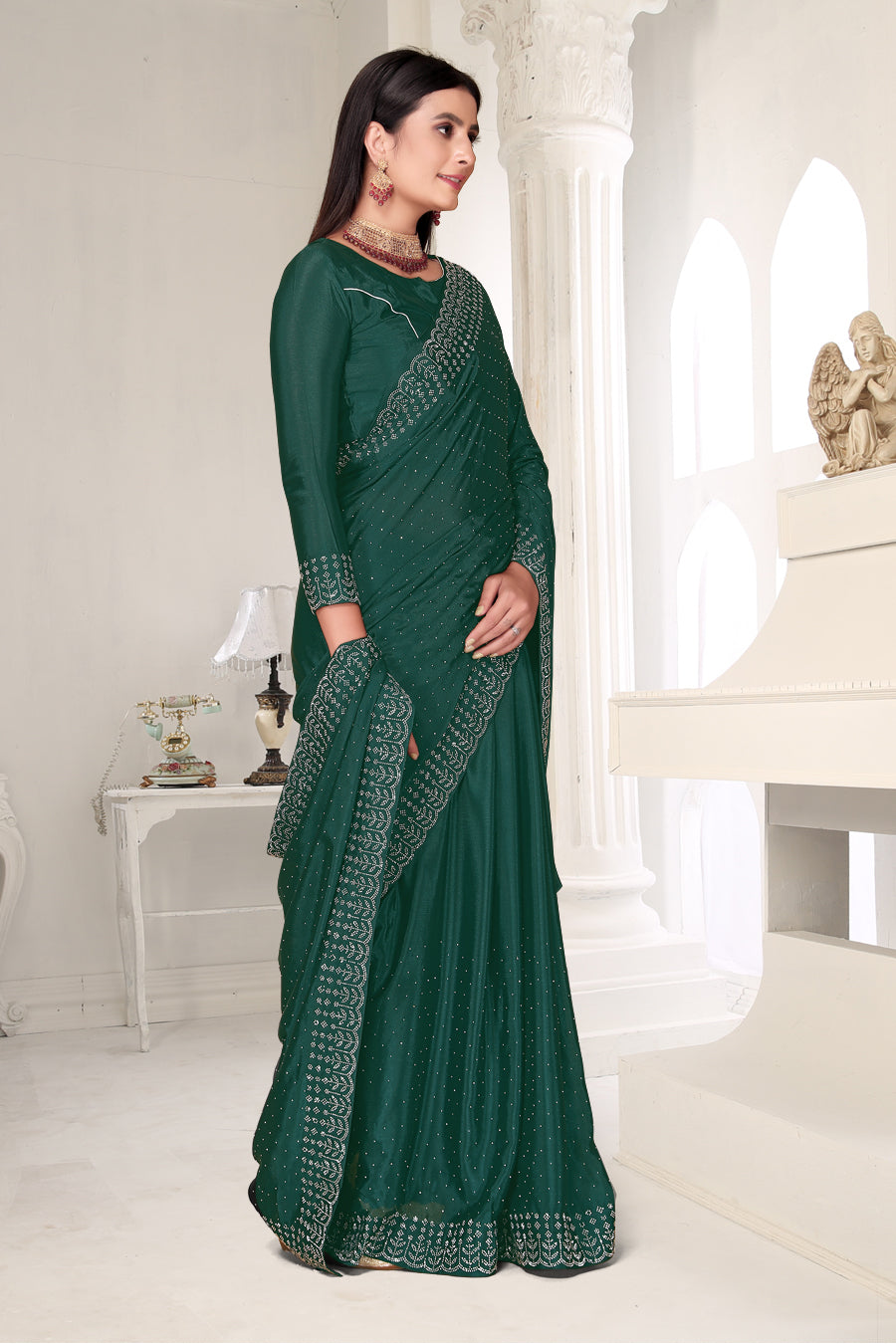 Elegant Vichitra Saree with All-Over Silver Stone Work