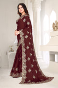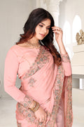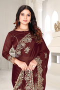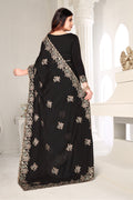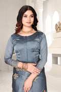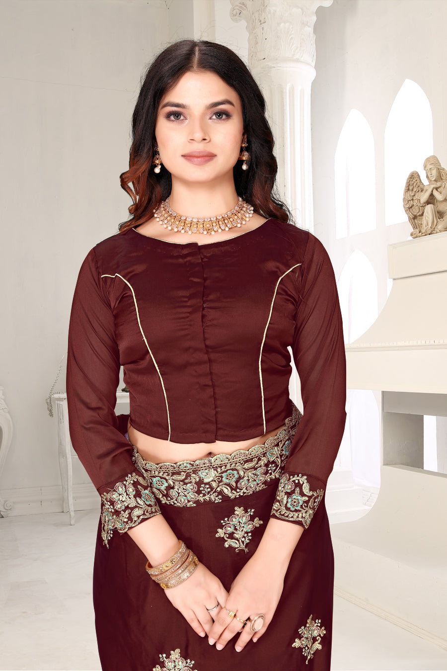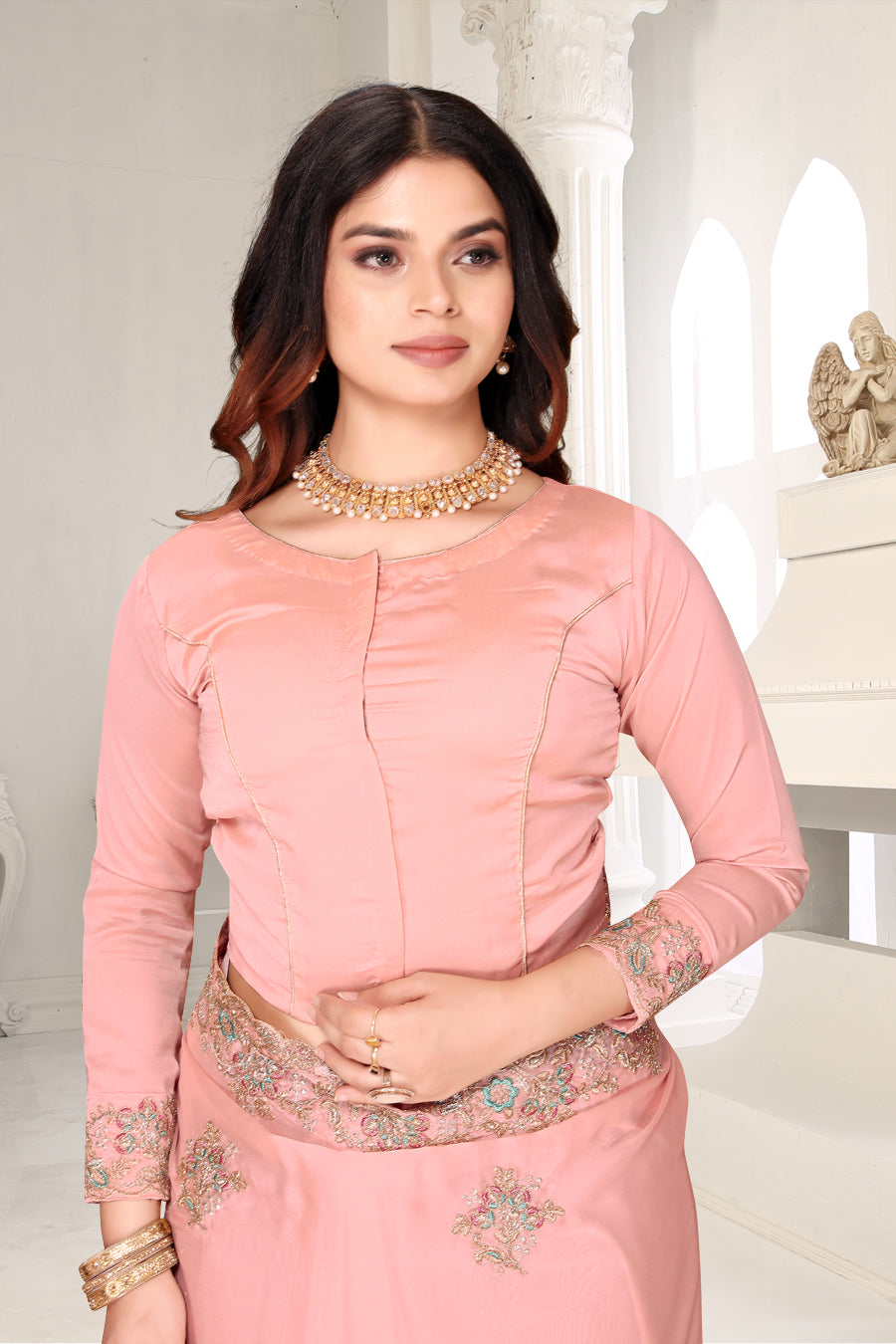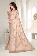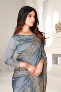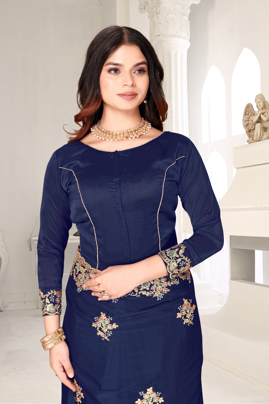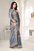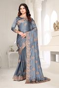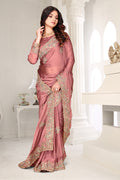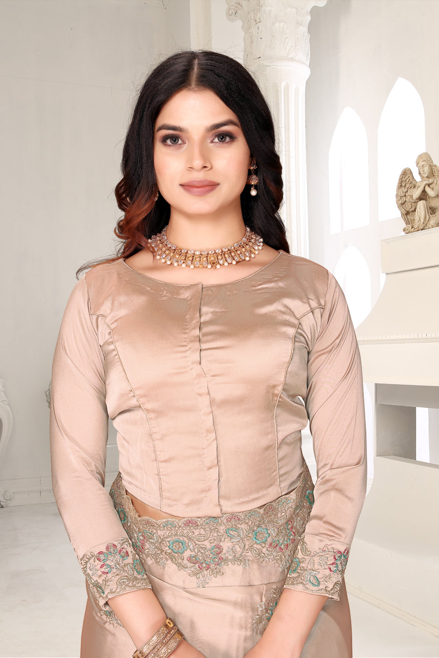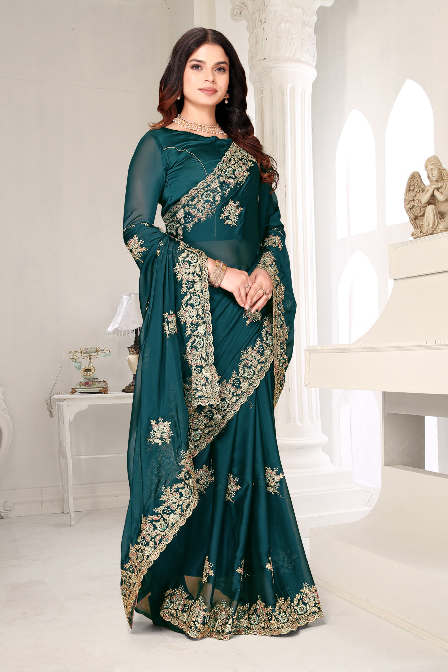 Grace and grandeur meet in this exquisite saree, adorned with intricately embroidered floral motifs and a richly detailed border. Made from luxurious silk fabric, this saree exudes sophistication and is ideal for weddings, festive celebrations, or grand evening functions. The subtle pastel embroidery in hues of gold, green, and pink adds a vintage charm, making it a timeless addition to your ethnic collection.