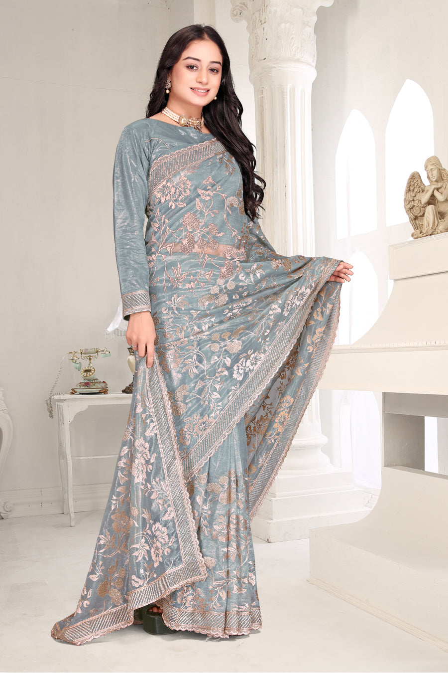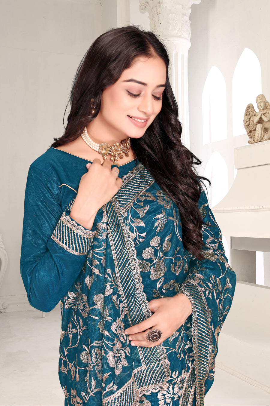 Radiate elegance with this exquisite creation from the Fabeha Prêt Collection. Crafted from Premium Twill Net, this fabric is celebrated for its lightweight, airy structure and subtle, built-in shimmer. Unlike stiff nets, this drapes softly around the body, creating a romantic, fairytale silhouette perfect for parties and weddings. |