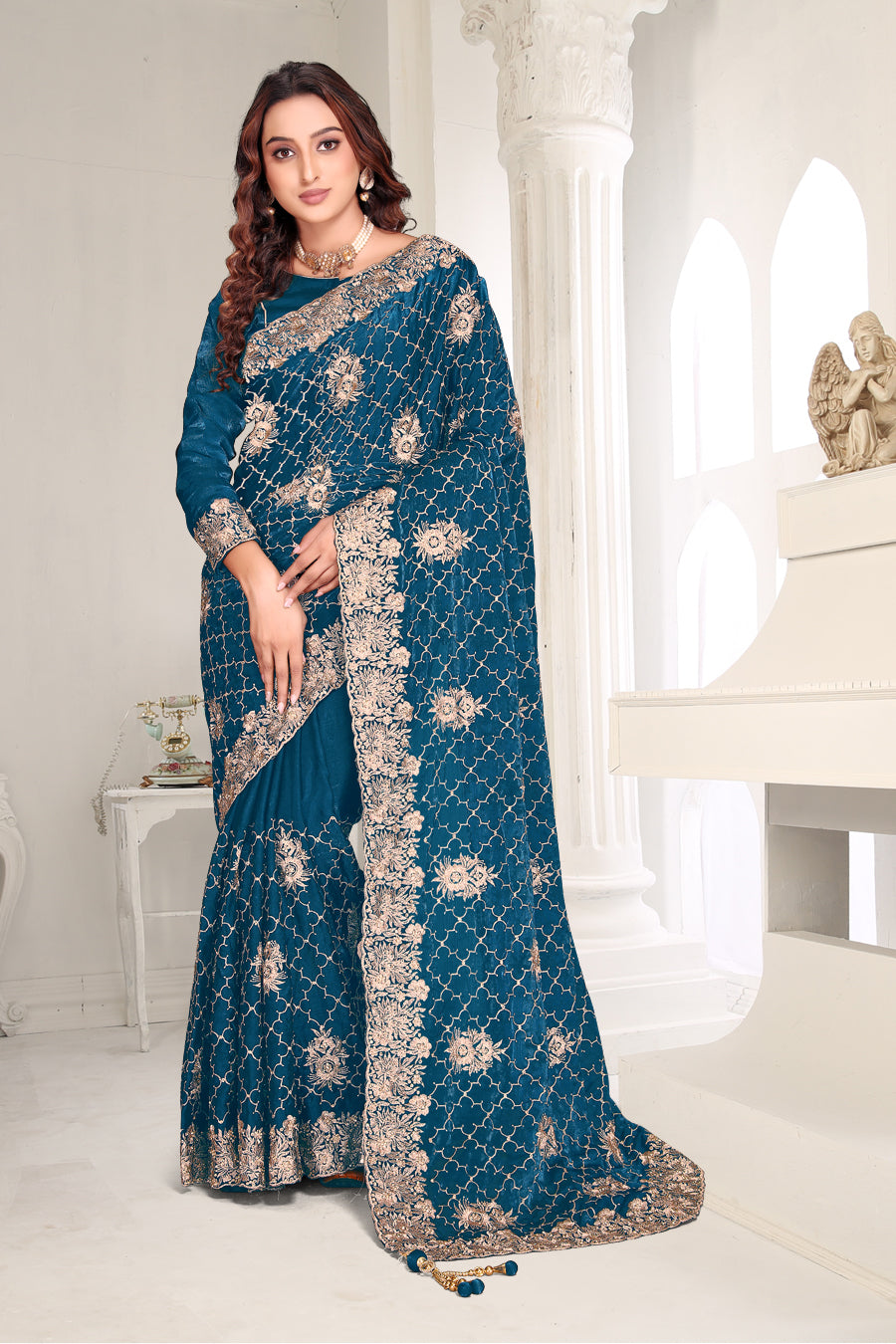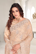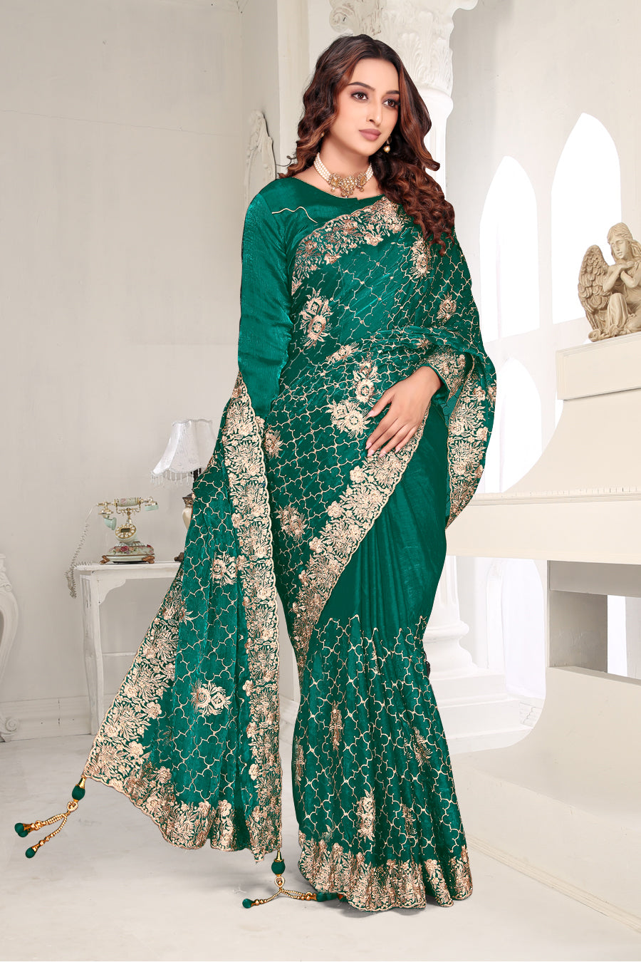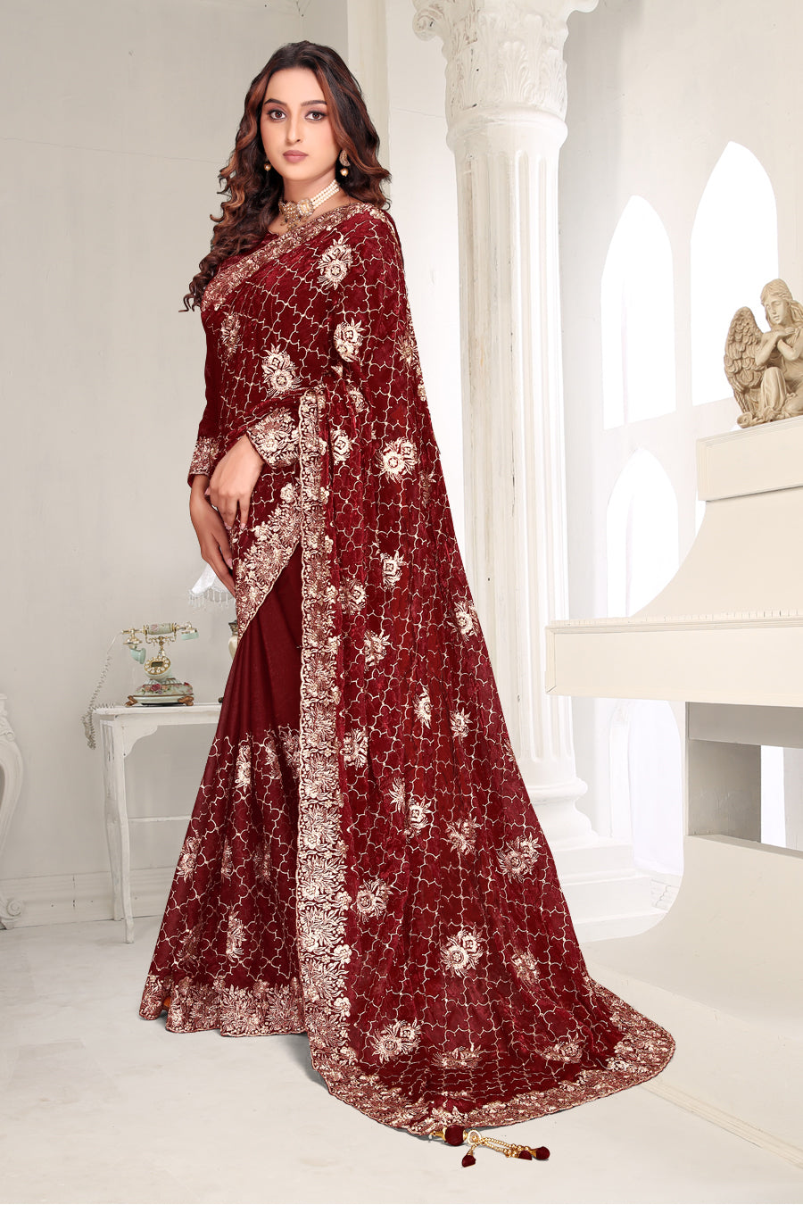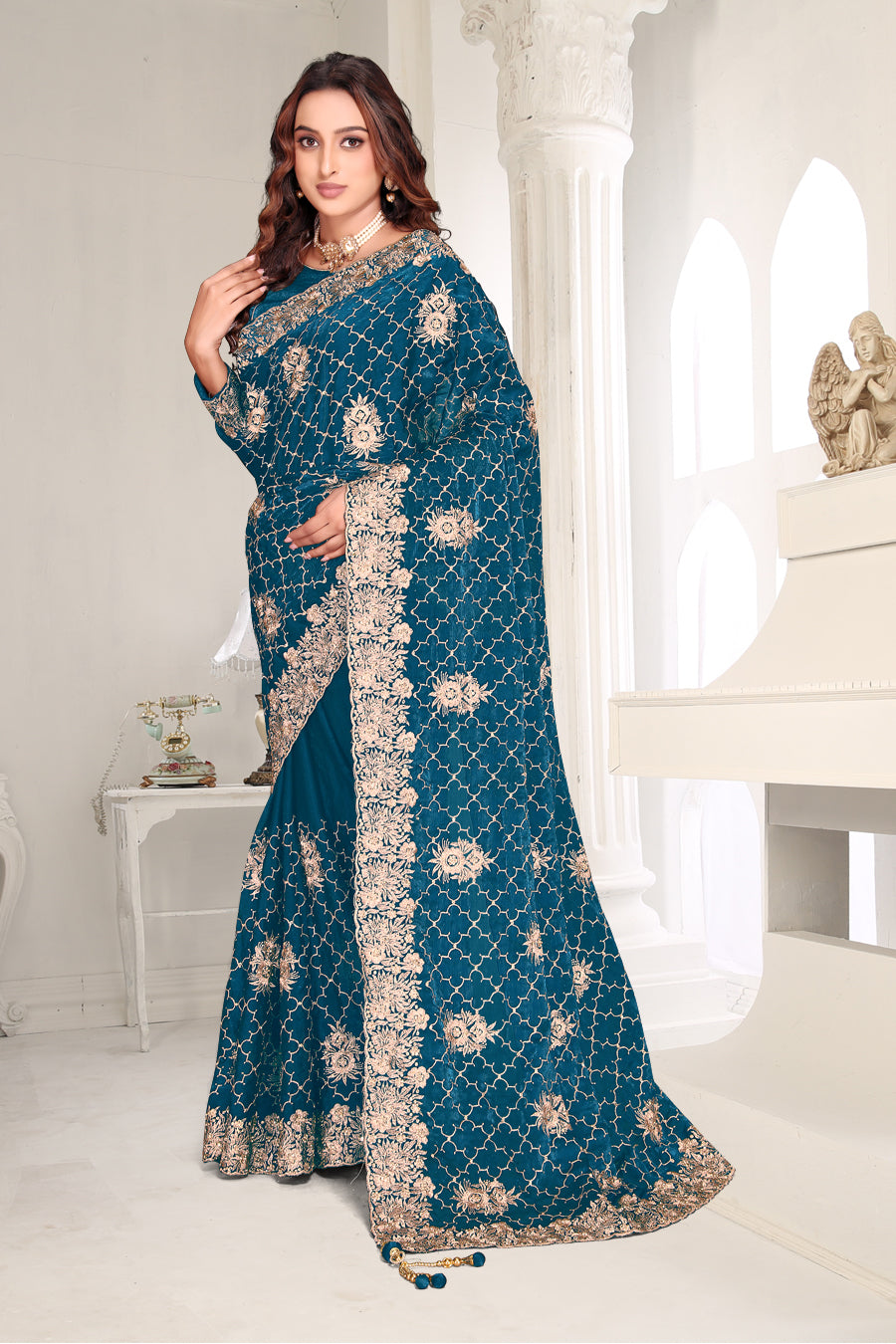 Grace Wrapped in Gold. The Ultimate Festive Statement." Radiate regal elegance with this stunning masterpiece from the Fabeha Prêt Collection. Crafted from high-quality Premium Fandy Chiffon, this saree offers a lightweight yet luxurious drape that flows effortlessly with every step. The fabric is transformed into a work of art with heavy Golden Zari work and intricate floral embroidery, creating a majestic glow perfect for weddings and celebrations. We’ve finished the look with an exquisite embroidered border and delicate, stylish tassels that add a refined, elegant sway to the pallu. This is affordable luxury defined—giving you the grand "Royal Wedding" look on a comfortable, wearable fabric. The Perfect Fit: Couture-Style Adjustable BlouseExperience the confidence of a custom fit with our ready-to-wear Princess Cut blouse. Engineered to hug your curves with a convenient front opening, it marries comfort with absolute glamour.