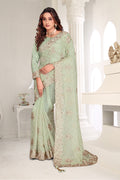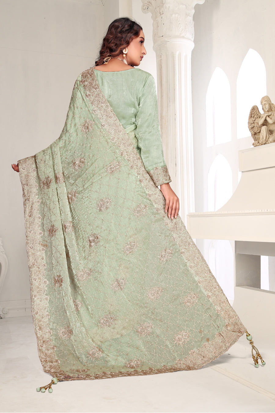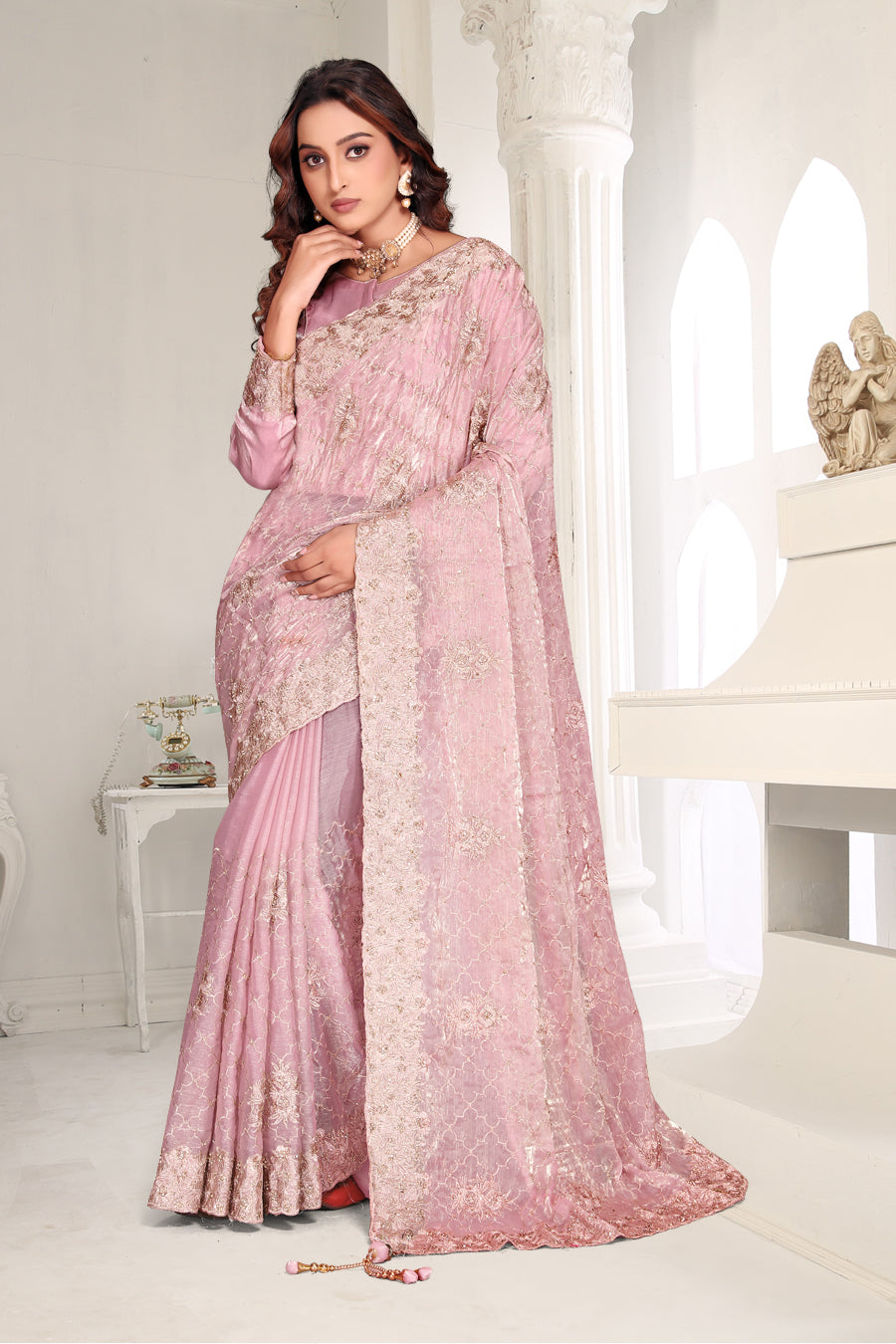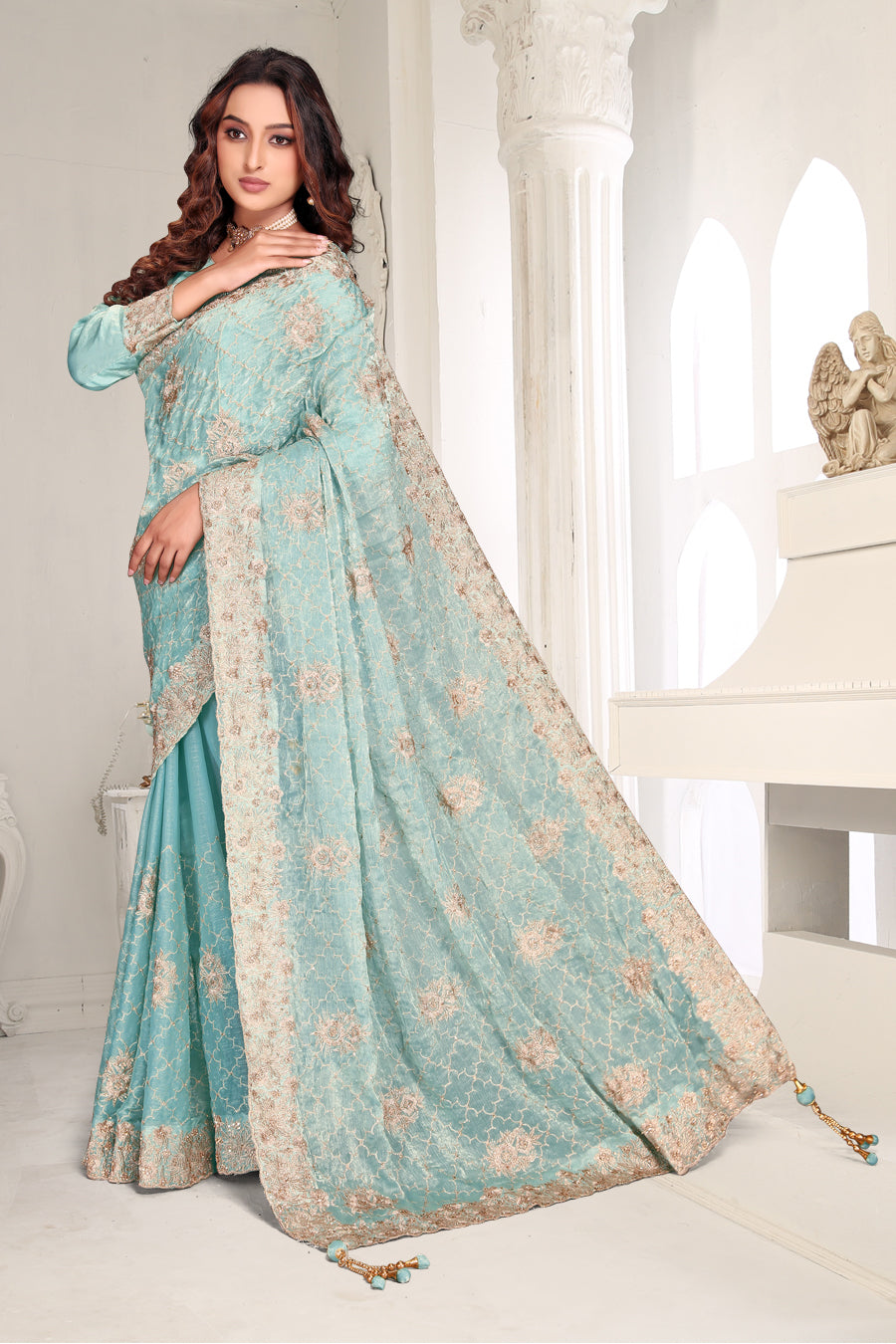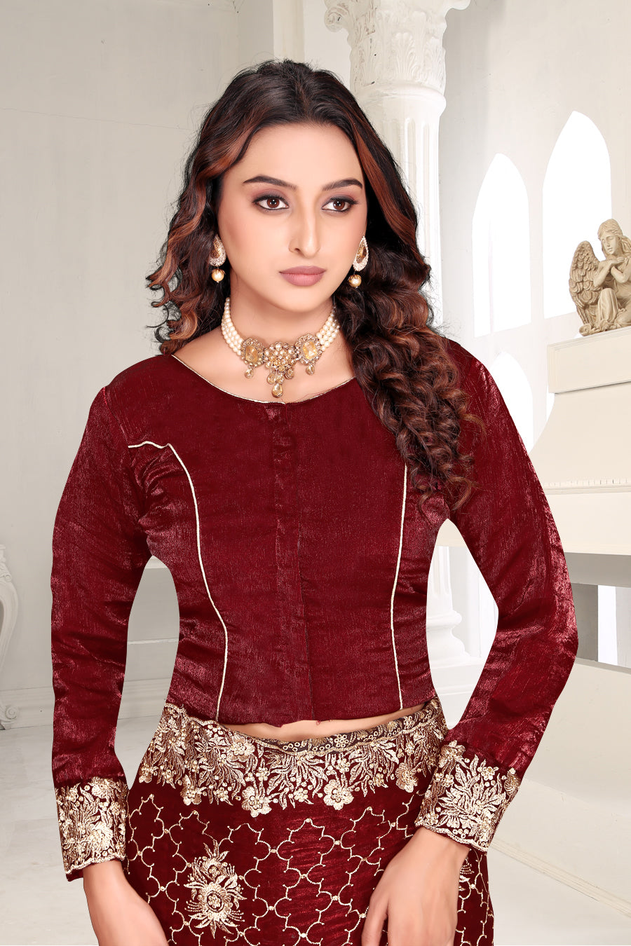 Grace Wrapped in Gold. The Ultimate Festive Statement." Radiate regal elegance with this stunning masterpiece from the Fabeha Prêt Collection. Crafted from high-quality Premium Fandy Chiffon, this saree offers a lightweight yet luxurious drape that flows effortlessly with every step. The fabric is transformed into a work of art with heavy Golden Zari work and intricate floral embroidery, creating a majestic glow perfect for weddings and celebrations. We’ve finished the look with an exquisite embroidered border and delicate, stylish tassels that add a refined, elegant sway to the pallu. This is affordable luxury defined—giving you the grand "Royal Wedding" look on a comfortable, wearable fabric. The Perfect Fit: Couture-Style Adjustable BlouseExperience the confidence of a custom fit with our ready-to-wear Princess Cut blouse. Engineered to hug your curves with a convenient front opening, it marries comfort with absolute glamour.