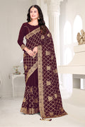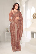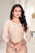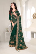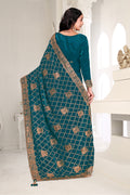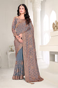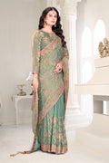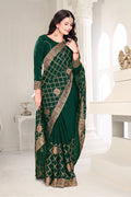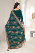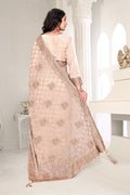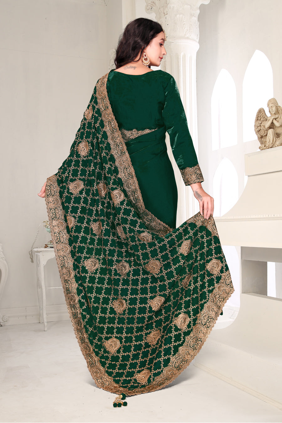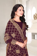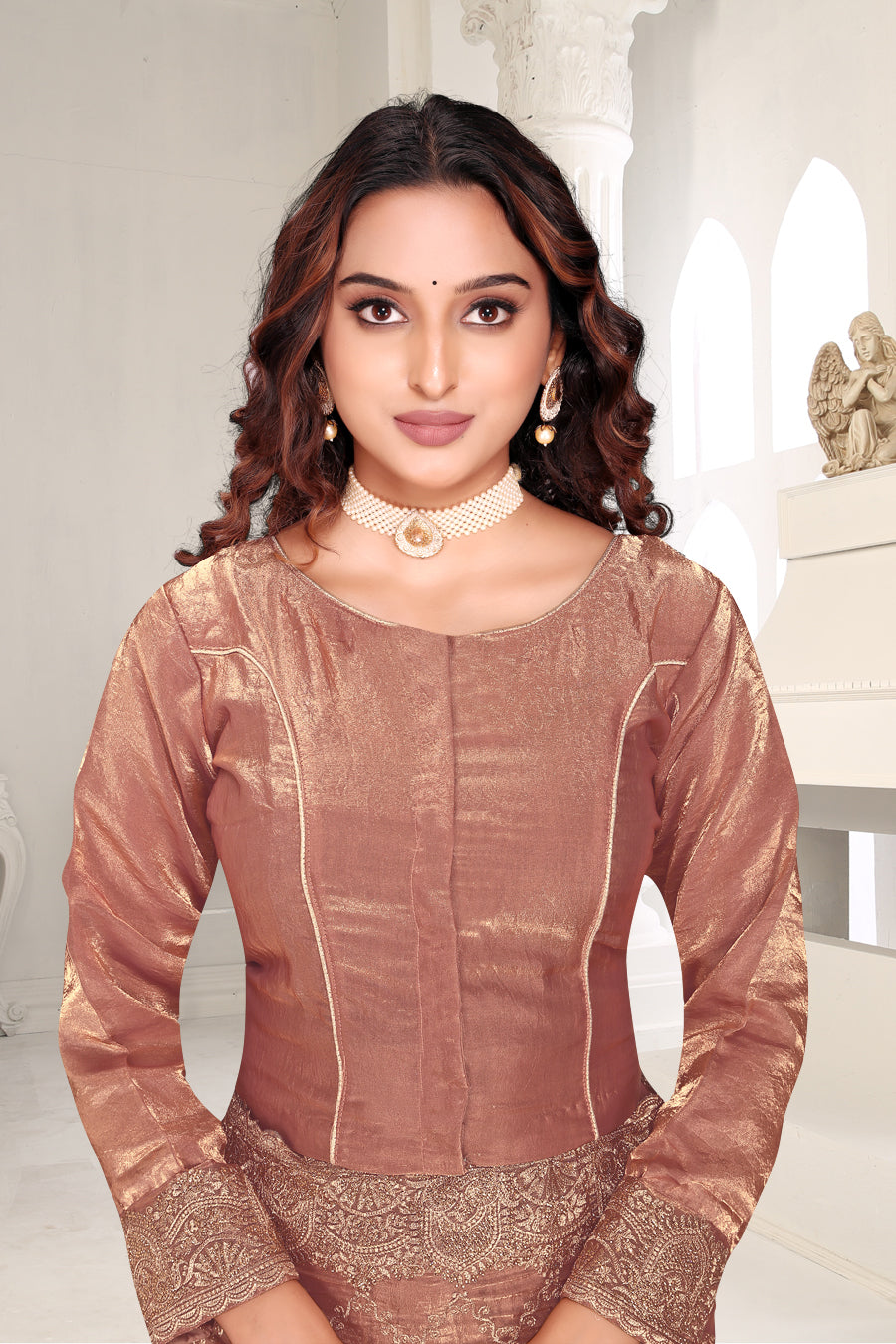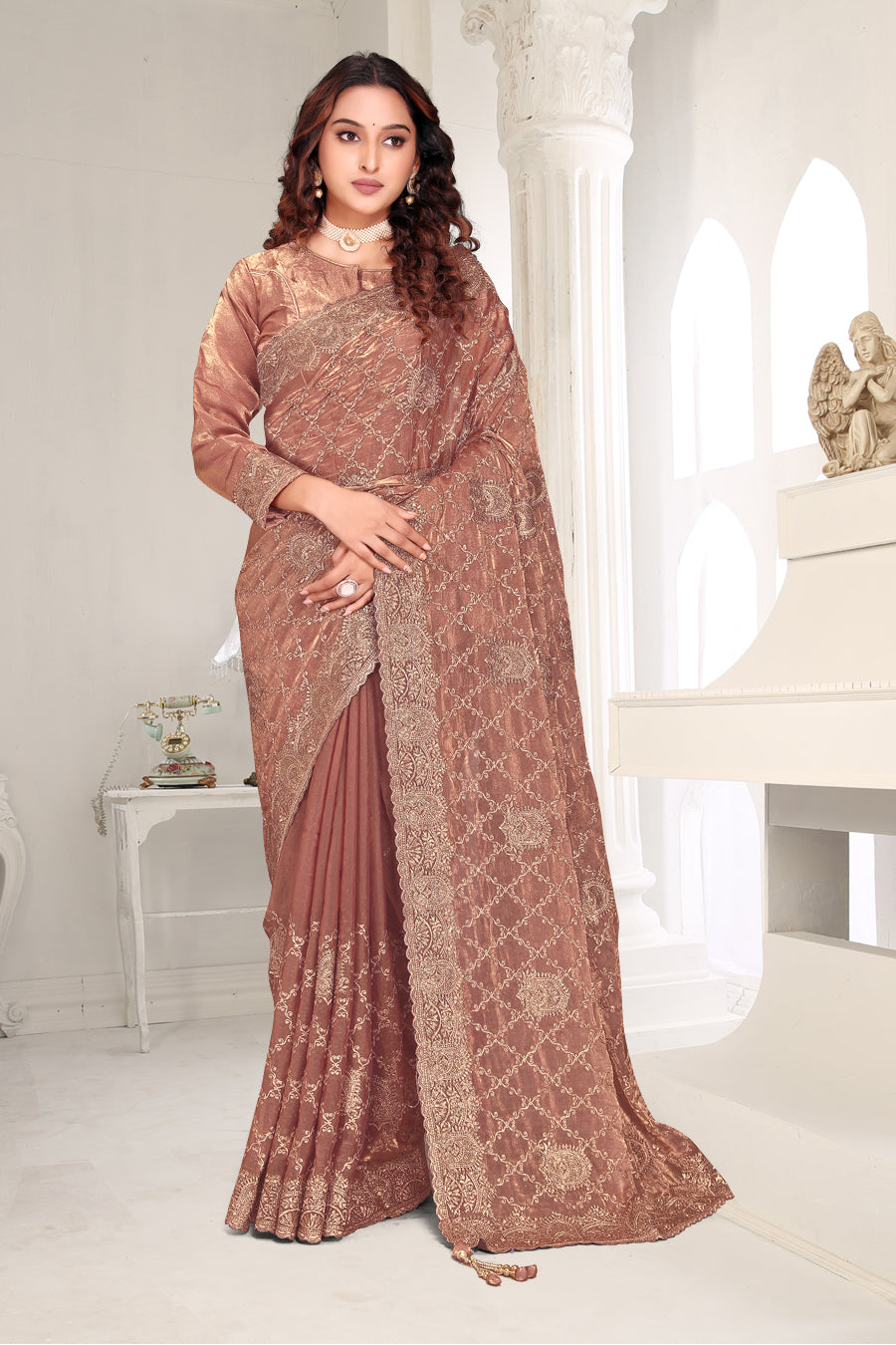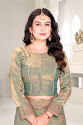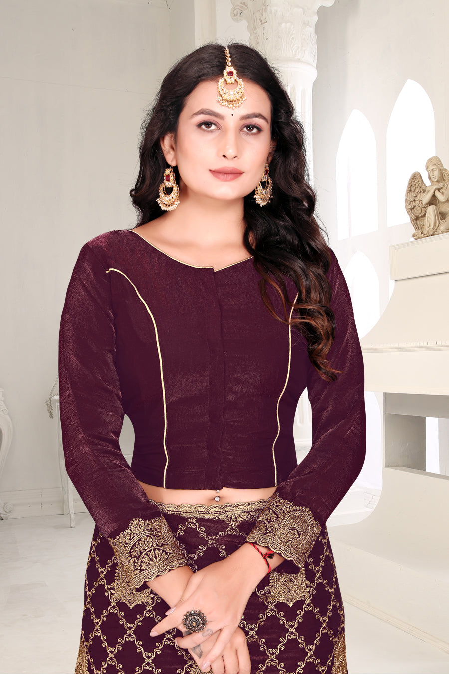"Drape Yourself in Vintage Royalty. A Masterpiece of Satin & Sparkle." Embrace the grandeur of a bygone era with this luxurious statement piece from the Fabeha Prêt Collection. Designed to make you feel regal, this saree is crafted from Lux Fandy Satin, a premium fabric known for its rich, glossy sheen and effortless drape. The fabric is lavishly adorned with all-over floral and geometric threadwork, interlaced with golden Zari and shimmering sequins that catch the light from every angle. The defining feature of this ensemble is the intricate scalloped border (cutwork), which adds a high-end, contemporary finish to the traditional heavy embroidery. Whether it’s a wedding reception or a festive soirée, this saree promises a look of absolute majesty and sophisticated glamour. The Perfect Fit: Couture-Style Adjustable BlouseExperience the confidence of a custom fit with our ready-to-wear Princess Cut blouse. Engineered to hug your curves with a convenient front opening, it marries comfort with absolute glamour.
