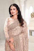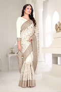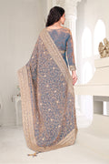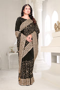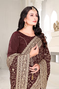 Prepare to steal the spotlight with this breathtaking masterpiece from the Fabeha Prêt Collection. This is not just a saree; it is a declaration of style. Crafted from Luxury Fandy Satin, the fabric flows like liquid elegance, creating a high-gloss silhouette that radiates sophistication with every step.