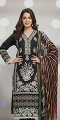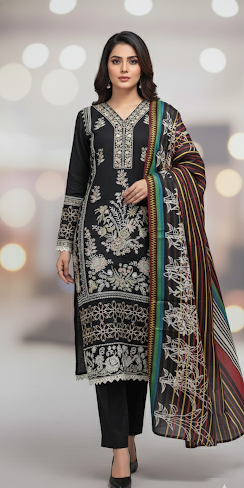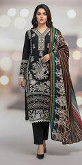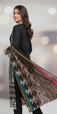 Prepare to turn heads this winter with our exclusive Black Friday Sensational Launch! This breathtaking ready-to-wear Premium Linen ensemble, presented in stunning Onyx Black, offers the perfect blend of warmth and high fashion for the chilly season. Its exquisite ALL-OVER front embroidery cascades with intricate detail, while handwork highlights shimmer across the entire front and wrists, adding a touch of dazzling allure. The fabric's rich texture ensures cozy comfort without sacrificing elegance. The true showstopper is the vibrant, eye-catching Dhanak Printed Shawl in a captivating retro print, designed to make a sensational statement against the deep, luxurious black. This isn't just an outfit; it's your go-to look for unforgettable winter style.