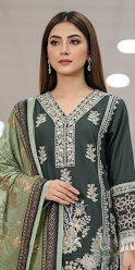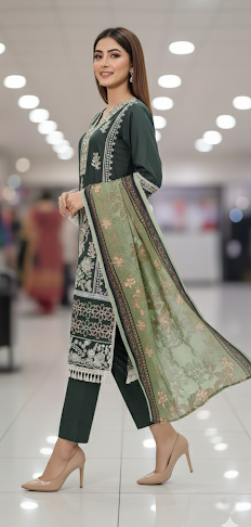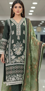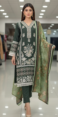 Prepare to turn heads this winter with our exclusive Black Friday Sensational Launch! This breathtaking ready-to-wear Premium Dhanak ensemble, presented in sophisticated Forest Pine (a deep, rich dark green), offers the perfect blend of thickness and high fashion for the chilly season. Its exquisite ALL-OVER front embroidery cascades with intricate detail, while handwork highlights shimmer across the entire front and wrists, adding a touch of dazzling allure. The Dhanak fabric's lush, cozy texture ensures luxurious warmth without sacrificing elegance. The true showstopper is the beautifully detailed Botanical Print Shawl that perfectly complements the rich green hue. This isn't just an outfit; it's your go-to look for comfortable, unforgettable winter style.