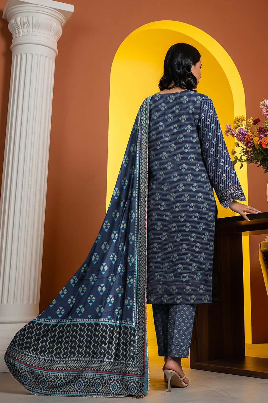 LS-2885 Ready-to-Wear Premium Winter Linen Suit - Indigo Geometrical