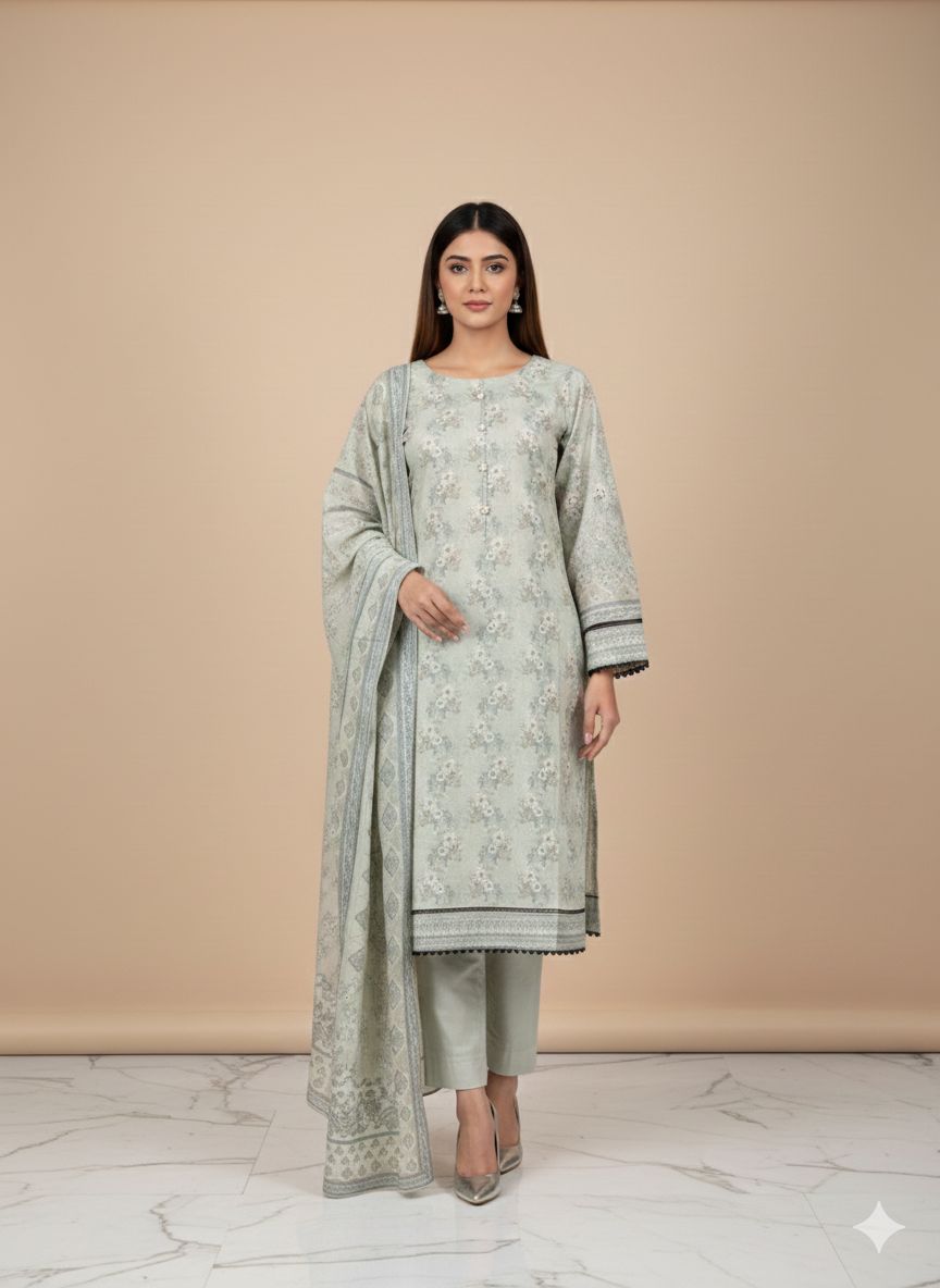 Elevate your winter wardrobe with this sophisticated three-piece dhanak suit, crafted from premium winter-weight fabric for superior warmth and drape. The stone moss colorway features an intricate digital print that balances contemporary design with traditional elegance, perfect for festive occasions, weddings, and formal gatherings. This ready-to-wear ensemble includes a meticulously tailored kurta, coordinating trousers, and a luxurious shawl, ensuring a polished, complete look straight from the box. The dhanak weave provides exceptional durability and comfort, while the digital print showcases fine detail and colour vibrancy. Ideal for those seeking refined ethnic wear that combines modern sensibility with timeless appeal.