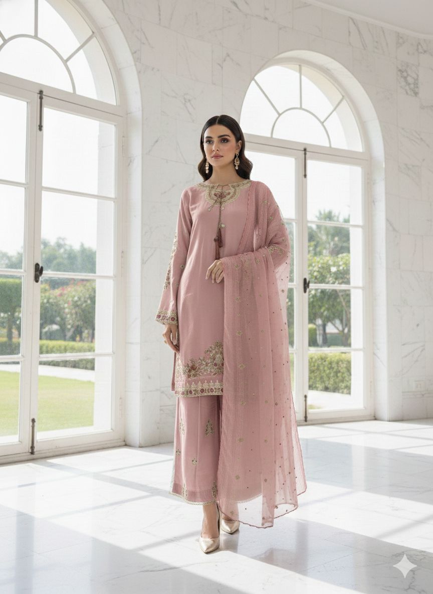 Elevate your wardrobe with this exquisite LS-3007 Palzoo suit, crafted from premium linen for breathable comfort and timeless elegance. This ready-to-wear ensemble features intricate embroidery detailing on the dress, complemented by a coordinating dupatta that completes the sophisticated look. Perfect for special occasions, celebrations, or refined everyday wear, the lightweight linen fabric ensures all-day comfort while maintaining its structured silhouette. The expert craftsmanship and thoughtful design make this a versatile investment piece that transcends seasonal trends. Ideal for those who appreciate quality textiles and traditional aesthetics with contemporary appeal.