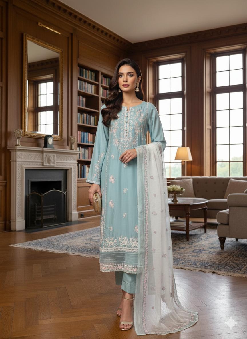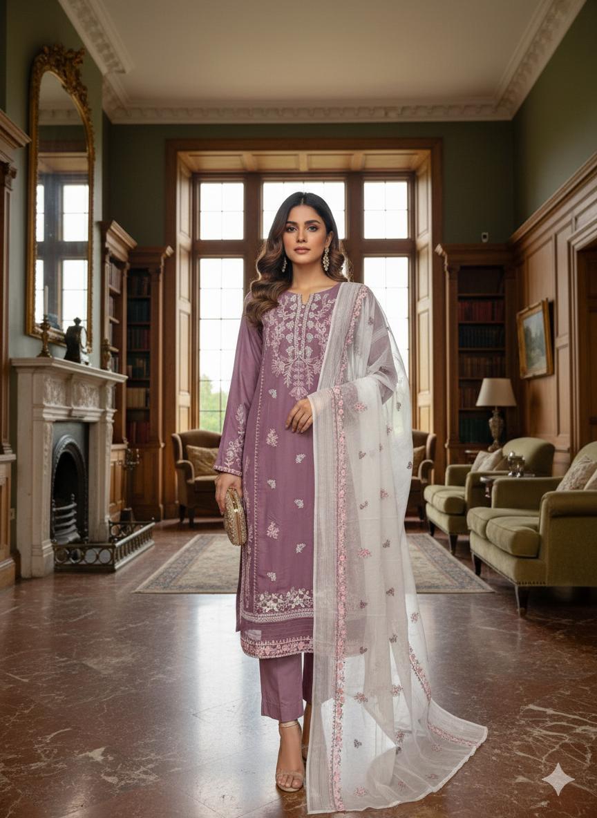This ready-to-wear linen suit combines timeless craftsmanship with modern sensibility. The embellished dress features a tailored silhouette enhanced by detailed needlework, while the included dupatta offers styling flexibility for any occasion. Constructed from premium linen, the piece prioritizes breathability and ease of wear without compromising on refinement. An ideal choice for those seeking contemporary ethnic wear that balances sophistication with everyday wearability.